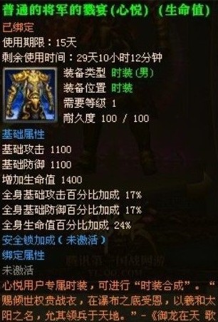 从白到绿,心悦都有了,我们可以发现一个问题,同色的心悦提成百分比不变,也是说,据此推测,普通紫和极品紫差的也就是固定数值。我们先对紫色心悦的百分比进行计算。 白 蓝 黄 绿 紫 攻防: 9,10(1,2)11(2)13(4) 17 X 生命: 10 (3) 13(5)18(6) 24 Y 根据数列进行推测,X的值为26,Y的值为36 下面分析数值: 因为手头图片不够,但是我们可以看见从白色到加强蓝五个等级增加了240攻防和和250的血,从加强蓝到极品黄五个等级增加了410的攻防和430的血,极品黄到普通绿一个等级增加150攻防和220血,可以推测。极品绿到普通紫增加属性必定大于150。 因此我们暂且推断普通紫心悦时装的属性为: 基础攻防+1500,基础血量+2000,基础攻防百分比26%,基础血量百分比36% 继续推断极品紫心悦时装的属性为: 基础攻防+1770,基础血量+2360,基础攻防百分比26%,基础血量百分比36% 此数据就算有些出入,但相差也应该不远。 根据分析结果,九鼎公主血量,紫心悦主攻防,各有千秋。 但是说到最强时装,我不能给你一个明确答复,因为没有人将御赐铠之类的合到绿色。 有实力的朋友可以试一试,御赐铠是否能合成,绿色御赐铠又是什么属性。 [编辑:天行]