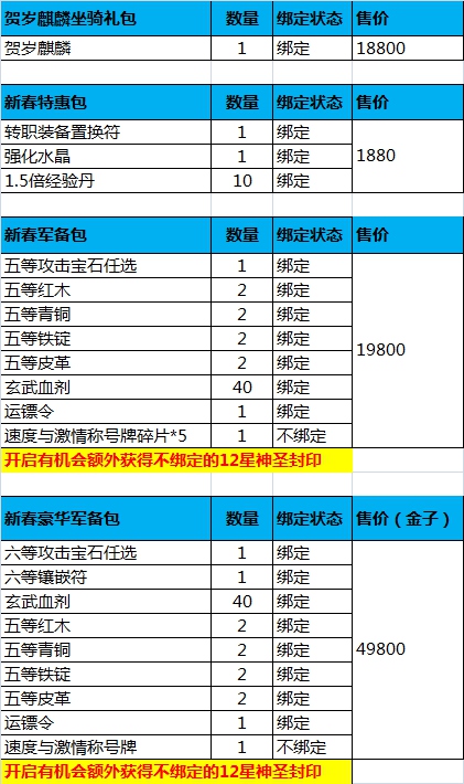 尊敬的御龙勇士: 感谢您对《御龙在天》公测的热情参与和支持!为了给大家带来更好的游戏体验,我们将于1月12日0:15对双线一、二区进行更新维护!为此给您带来不便,我们致以最诚挚的歉意!维护期间欢迎您进入御龙在天官方论坛(http://yl.gamebbs.qq.com/ )和微博(http://e.t.qq.com/yl )与更多玩家讨论更新内容以及相关精彩活动。 维护时间:1月12日凌晨0:15-2:00 维护范围:双线一、二区 维护原因:游戏内容更新 注意事项: 维护大区“三国志”维护期间休战。 【更新内容】 活动相关 1、新增迎甲午年新春副本“甲午幻境”,每天可通过甲午真人NPC(王城719,559)进入副本,可获得丰厚人物经验、极品装备、高级物品,以及海量副将经验(直接给副将升级); 2、商店限时上架贺岁麒麟坐骑礼包,打开将得到传说中的神兽麒麟坐骑时装30天; 3、商店限时上架新春豪华军备包、新春普通军备包、新年特惠包。 (12星神圣封印,封印着12星,无论使用星移符还是保底星移符,都将100%完美移星成功) 优化内容 1、边境危机优化(暂仅在双线一、二区开启):国运期间,家族长在王城军需大臣旁的家族镖头NPC处(王城700,661)发布家族运镖活动时,所需要的不同物资开启相互转换功能; 2、八卦玩法优化调整(暂仅在【龙啸抬头】开启): 1)八卦位置:霸、御、王、玄,调整为:风、火、水、土; 2)八卦属性从基本攻击、防御、血量,调整为属性攻防,新八卦牌数值效果大幅提升20%; 3)旧的八卦牌将不再产出,但已产出的旧八卦牌属性依然有效(在八卦面板不在显示,C界面可查看属性效果)。 更多游戏精彩内容和攻略,可咨询游戏内“帮帮精灵”了解。 致力于提升游戏品质,为玩家创造更多快乐,是《御龙在天》项目团队的至上使命,感谢广大玩家一直以来对我们的支持和理解,御龙有你更精彩! 《御龙在天》运营团队 用心为您服务 御龙在天官方微信:ylzt_china 2014年1月11日 [编辑:天行]