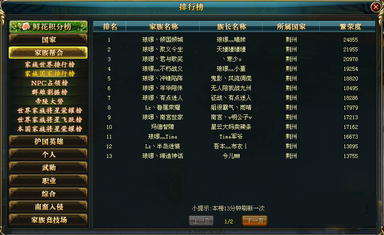 【风华绝代】是7月1日刚开放的公测区新服,开服之初,贴吧上就有玩家发帖“风华绝代,就冲这个名字,下区啊”。开服以后确实也没有辜负这个好名字,目前【风华绝代】服务器最为引人关注的国家,当属帝国荆州。荆州不但国力最高,而且集合了狼族公会与琅琊公会同时入驻,竞争非常激烈。 王城战:琅琊公会大比分差距取得胜利 开服以后,荆州上演过两次王城战,第一次琅琊公会与狼族公会同时宣上王城战。可惜狼族准备不够充分,多个四级家族进入帮派,人数没能最大化。而琅琊则众志成城,公会玩家的团结一心,顺利的拿下荆州王城。 随后进行的第二次王城战,狼族反思,进行了充足的准备,但琅琊有守王优势,狼族依然无法逆袭反超琅琊,最终还是被大比分压制。琅琊守王成功,狼族士气低落,最终离开荆州。 国力:超高国力,使得荆州喜忧参半 国力是国家综合实力的表现,影响因素众多,包括国民数量、国民等级、国民战力等。开服以后,荆州的国力就以罕见的800万遥遥领先。作为新服,短期国力的稳定性普遍较差,远期看来,随着狼族公会的离开,国力估计会有所降低。 当前超高的国力带给荆州的,是喜忧参半的局面。喜的是,其他国家忌惮荆州实力不敢发难,可以让荆州有空间和时间发展。忧的是,帝国的转国费很高,想要吸纳其他优秀家族到荆州发展,需要大量的银子,局限着荆州招贤纳士的脚步。 战力:个人战斗力逐步增加,荆州发展欣欣向荣 现阶段,荆州国内无内乱,边境无外敌。国民们积极升级,调整装备,拥有高质量装备的玩家不断涌现,打造着国家战斗力。整个荆州一片欣欣向荣的局面,正朝着持续上升方向发展。 公会:琅琊公会荆州一家独大 从当前的家族世界排行榜上看,上榜的家族绝大部分都是琅琊下属。狼族的离开,带走了大批公会内实力家族,而荆州国内也无新增强势公会进驻。琅琊已是一家独大,只要公会内部不出现动乱,目测短时间内不会再上演王城争夺战的戏码。 [编辑:博博]