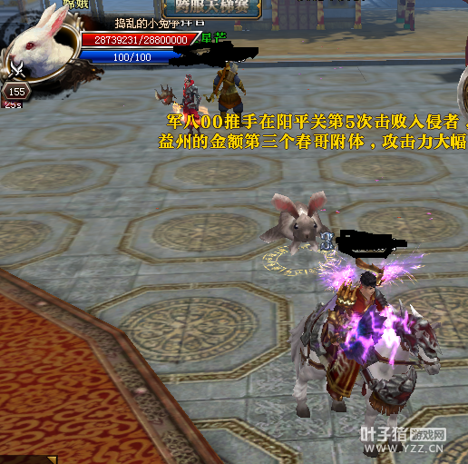 兔子分为白色和紫色两种颜色,名字有捣乱的小兔子和嫦娥姐姐的玉兔两种。在有经验掉落状态下可以获取前朝古币、绑银、材料、普通名将改造符、淬炼宝石、工资、金刚石、夜明珠等等,掉落相当丰富。不过我们要说的可不是掉落多好,而是兔子的其他用处! 兔子的血量很高,攻击也不低,而且追着人杀,认准你就是一直追。所以,许多“坏坏”的小伙伴开始用兔子去清挂机(尤其地宫秘境这种不能攻击的安全区域),还有清挂脚本刷护国的玩家(ಡωಡ)hiahiahia !兔子由掉落丰厚的精英怪摇身一变,变成了十步杀一人,千里不留行的杀人利器,也是让人感到辛讽可笑! 不知道你有没有中招呢?祝大家中秋节快 [编辑:帅宝宝]