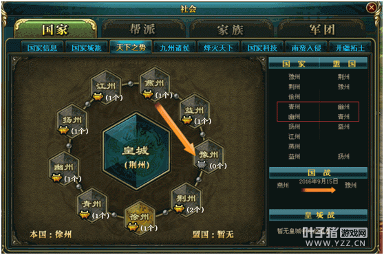 自从青州向扬州露出了獠牙后,迅速找到了战友幽州并成功结盟,与幽州一起对战扬州益达,此刻,青幽18X数量上已经与扬州益达持平。虽然,质量上比起扬州18X有很大差距,但在高端战力上也有了一定的话语权。而两国加起来国力虽然还比不上杨益,但两者加起来还是一股不容小觑的势力 恰巧,益达正好宣到了14号对青州的进攻国战,青幽VS杨益的首次实力对碰在14号晚上8.15打响,由于国战进攻方本身就具有很大的优势,加上扬州益达两国国民也听指挥,即使遇到了青幽两国不小的阻拦,但也拿下了胜利。而后,青州发起反击,青幽虽然人数略少于扬州益达,仍然士气不减努力想要扳回一局,可惜天意弄人,青幽两国虽然想扳回一局,但是两国刚刚结盟,国民之间的磨合还略显不足加上许多人没有听指挥导致最后惜败于扬州益达,平白送给了扬州益达双杀黄箱子。不过,假以时日,青幽两国磨合成功,想必,与扬州益达的战斗将会更加精彩