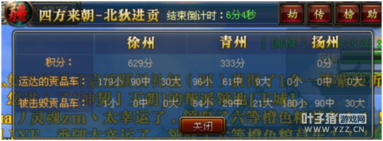 荆州青州VS扬州益达无疑是备受区内玩家瞩目,然交战至今尚未分出胜负。在上周的开疆拓土中,扬州和益达被分到了帝国荆州这一组,本以为在荆州人多高战多国力高的优势下能一举取得胜利。不过,结局却是让人跌破眼镜,扬州靠着盟国益达的帮助,反超了荆州取得了胜利,获得了西戎的进贡权,平白让帝国损失了一点脸面。 而在本周的四方来朝中,荆州青州再度与扬州益达交锋,抱着与上次一样的互相伤害想法后,双方再次围绕着贡品车进行了交战。不过,这回的交锋却是扬州益达落了下风,扬州本国的贡品车在没有厚重的防御下,被荆州大量火力下逐个摧毁,所有贡品车无一幸存,而扬州益达组织去砸青州的贡品车,却是收效甚微,相对于扬州贡品车全碎的情况,青州方面只是损失了一半左右。 最后活动结束时,扬州再度零分,而青州却留存333分。此番的四方来朝,以扬州益达惨败落幕 [编辑:帅宝宝]