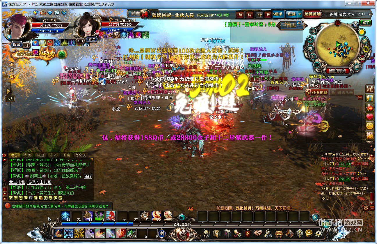 2016年12月10日下午2点,【雄图霸业】徐州与豫州在徐州边境展开激情的对砍,两国一直的死仇,双方不断的发生摩擦,大大小小战役经常上演。 徐州目前没有18星或者15星,国力比较弱,可是这个国家的人非常有血性,不畏强敌不会轻易认输。豫州有2套18 一套15 ,国力上也领先徐州,总体战斗力是占据优势的。 这次的纠纷是因为徐州有一个家族任务,遭遇豫州的无限堵杀,导致扩大到世界口水,引发了约战。豫州非常强势,他们直接过边徐州边境,双方展开了大规模打部队的混战。徐州本土作战,可以拉令也可以安全复活,虽然战斗力弱一点,可是还是有优势的,无数的战士用勇气与强敌开打。豫州虽然他国作战,可是全国战士踊跃参加,无视红名与辛苦,来往奔赴徐州边境,战斗场面是惨烈与激情的,也吸引了几个国家的爱战战士前来观战,让【雄图霸业】勇士感受到御龙的激情。 两国国家从下午2点一直打到晚上8.30,很多战士的任务不去做,甚至每周的狼烟都没打,为了国家的荣誉与尊严,浴血奋战,体现了御龙最大的战斗魅力。 [编辑:帅宝宝]