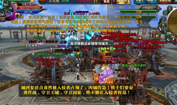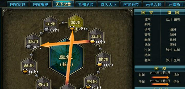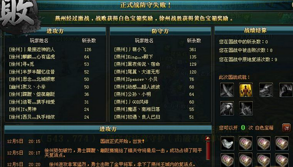 俗话说大树底下好乘凉,跟着大国有福利。12月5日【名满九州】就上演了一场彰显大国福利的国战。 攻方:徐州 徐州是【名满九州】一个比较普通的国家,国力三百万左右,做为反帝国联盟中的主要成员,在世界核心战力榜上有一定数量的高战。徐州的盟国幽州国力约两百二十万左右,世界核心战力榜上的高战仅次于荆州帝国。徐州和幽州目前可以称得上是名满九州最大最强的联盟。 守方:燕州 燕州是【名满九州】的一个弱国,国力只有一百三十万左右,先前曾经是荆州帝国的盟国,听说后来因为国战和BOSS等原因与荆州帝国解盟,但依然与荆州保持友好关系,其他反帝国联盟成员对燕州依旧仇视。12月5日徐州对燕州发动国战,燕州能否在国战中展现出亮点,让我们拭目以待。 12月5日晚上8点15分,徐州对燕州的国战正式开始,而此时有一个很重要的讯息,徐州的盟国幽州正在参与国战联赛第二阶段的楼兰大赛,无暇顾及国战,徐州和燕州展开一对一的公平对决。国战开始,徐州在爆掉镇关守将和金甲将军之后,领取战车,开始逼近大鼎。燕州在内城拉令,大批玩家领取战车压出大鼎,双方在大鼎附近相遇,徐州不等待直接从右侧进口进入内城准备攻击白虎,燕州紧随其后,徐州因为战车过少,全军覆没,白虎掉血很少。徐州再次准备领车,但第一波失利导致士气低落,徐州战车甚少,几乎不能进入燕州内城,燕州胜利在望。国战倒计时二十五分钟,燕州神兽几乎还是满血。但在此时却传来一个噩耗,幽州楼兰战结束,开始支援盟国徐州国战,幽州和徐州同时领取战车直逼燕州内城,燕州无力防守,国战迅速溃败。四分钟后,大鼎出现在王城郡守附近,燕州拉令输出大鼎,大鼎掉血一般,但燕州有希望打爆大鼎。大鼎到达西门位置即将半血,未曾想燕州直接放弃输出大鼎,两个大鼎最终被徐州夺得。 从国战的整个过程可以看出,徐州和燕州国战前期势均力敌,中期盟国幽州参战,彻底改变战局,燕州守鼎从满怀希望到放弃过早,十分可惜。 [编辑:帅宝宝]