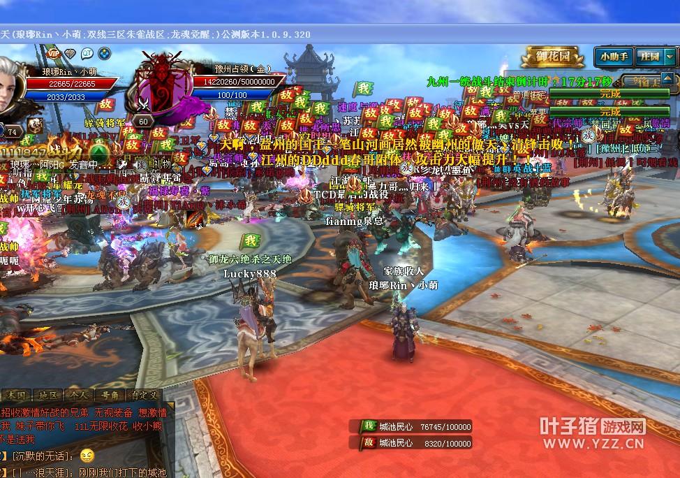 今天在龙魂觉醒服务器迎来了第三次的荆州和扬州打九州一统,龙魂觉醒自打开服之后扬州荆州水火不容,随着荆州的一家独大使得扬州,豫州,青州,燕州保持暗盟关系。随着70破封盟国系统的开放燕州和青州结盟,扬州和豫州结盟共同对抗荆州。 在草船完之后扬州指挥开始上麦动员,面对大帝国荆州,豫州和扬州为了避免被双杀必须采取放弃一座城池的战策,因此双方决定哪边胜算大去哪边,8点九州一统准时开始扬州进图之后率先拿到了中间BOSS的最后一击,因此比方暂时领先与荆州,这并不是第一次打九州一统扬州在荆州面前处于领先,70封印时在打九州一统的时候起先扬州领先荆州2000分,但是却在最后被荆州反超没有拿下而暗盟豫州也因此丢掉了一座城。荆州双杀了豫州和扬州取得了胜利。 这次在九州一统一开始时扬州便完成了一次五点齐爆,由于荆州指挥性格天生傲慢,还想再次双杀扬州和豫州,因此将人马分开,但是由于人马分散的原因扬州还有豫州都以最快的速度将比分拉大,荆州看夺取豫州城池没有希望因此便只留了几个高战在豫州那里其余人全部支援守城战,在荆州的全部人马进入守城战之后明显压力便大,在快要挺不住的时候豫州带领着大队人马进入了盟国攻城战,就这样双方以秒为单位轮流占领着四个大旗中间大旗也是几分钟便易主,慢慢的由于扬州豫州齐心协力将比分慢慢的拉开,最终荆州看守不住自己的桃源镇只好含泪放弃,全员去参加攻城战,而在这时扬州指挥也当机立断命令全部人出图去参加盟国守城战,再打了大约几分钟后荆州看攻城战也没有希望便只好再次放弃,荆州帝国遭遇有史以来最大的打击被双杀。随后荆州女王上麦安慰国民,那么下周的九州一统会出现什么样子的局面呢?让我们一起拭目以待。 了解更多相关信息,请前往http://ylzt.yzz.cn/ [编辑:博博]