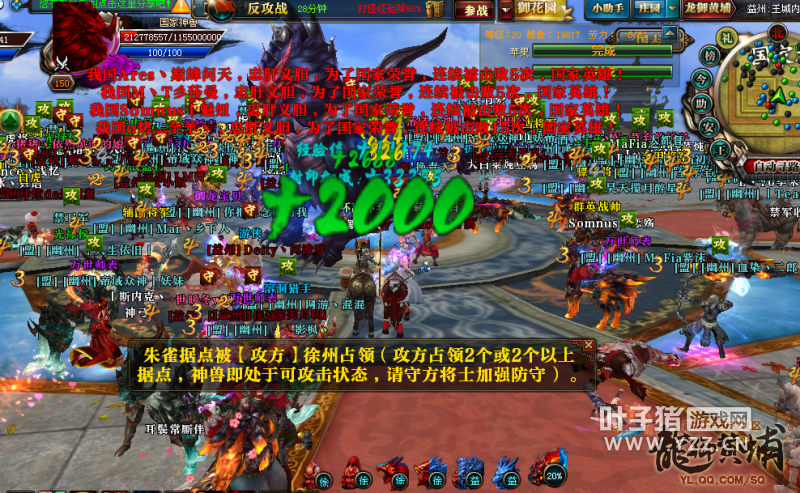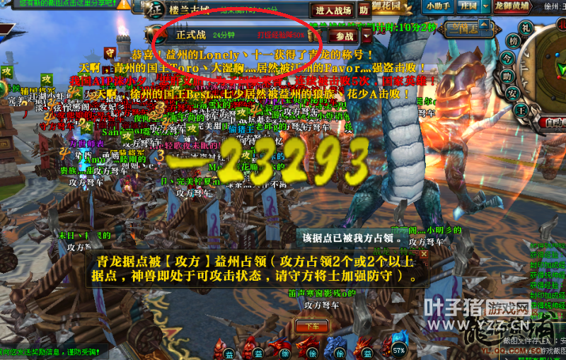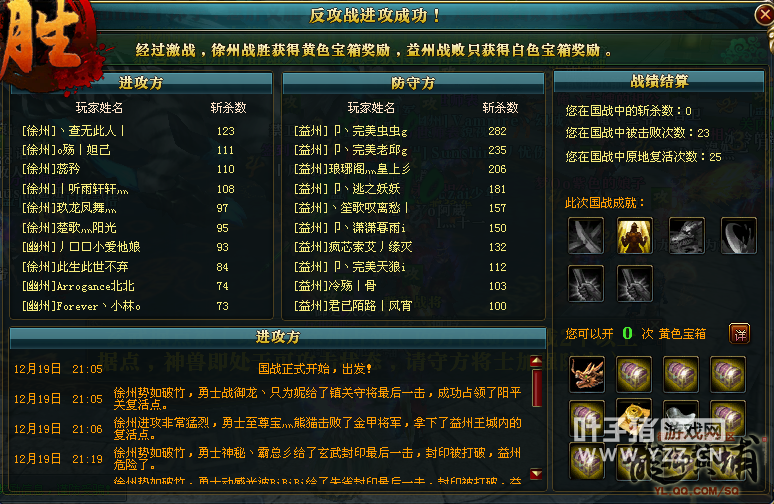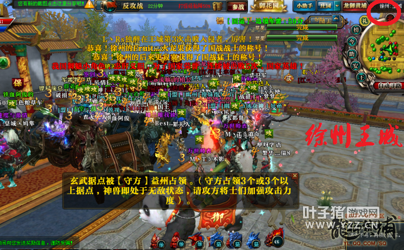 【猛龙逐鹿】徐州和益州之间的国战很值得一看,两个大国互有输赢,12月19日益州对徐州发动国战,正反国战场场精彩。 益州是【猛龙逐鹿】当前的帝国,国力三百六十万左右,世界核心战力榜上拥有数套十八星,综合战力遥遥领先于其他各国,并且拥有不少忠实的附属暗盟。益州国内此前曾经过家族内乱,然后因为益州完善的管理体系,益州国内很快就稳定下来,继续力压徐州。 徐州是【猛龙逐鹿】曾经的帝国,但那些都是昔日的光环。当前徐州国力两百七十万左右,为【猛龙逐鹿】强国。徐州在与益州对抗的过程中,因为益州压力过大,曾有家族和高战流失,整体实力下降,但此时除了益州,其他联盟很难战胜徐幽联盟。不过最近徐州因为管理问题,玩家士气有些低落,败于荆扬联盟。12月19日益州对徐州发动国战,徐州反击战还能战胜益州么? 12月19日晚上8点,益州和徐州之间的国战正式开始,益州放弃楼兰选择国战。益州在爆掉镇关守将和金甲将军之后,率先领取战车从大鼎右侧进入内城输出白虎,徐州几乎无人防守,白虎一波被打残。益州再次领取战车压向大鼎,徐幽联盟开始准备反击,在内城拉令发车,大批战车在大鼎高台两侧居高临下等待益州战车到来。益州战车在指挥的安排之下,从左侧绕墙无视红名战车直冲内城,输出青龙,徐幽联盟战车则紧随其后,攻击战益州战车。益州经过几波冲击之后,青龙被打残。益州再次集中战车火力,从大鼎右侧顶着红名战车大阵冲进内城爆掉白虎,并同步朱雀和玄武,中间神兽激活。徐幽联盟组织战车爆掉白虎之后开始瞬移爆朱雀和玄武。益州则安排几个家族领取小部分战车偷袭掉青龙。中间神兽始终处于激活状态,徐州回天乏术,正式战失败,大鼎出,守鼎成功。 徐州发起反击战,徐幽联盟爆掉镇关守将和金甲将军之后领取战车进入内城,输出白虎,益州战车防守。国战倒计时33分钟,益州内城朱雀和玄武被徐幽联盟同步,徐州指挥安排徐幽两国同时在中间拉禁卫军,中间神兽一波竟然掉了79%的血,真的是一波惊人,直接奠定了徐州反击战胜利的基础,徐州再一次同步朱雀和玄武,原本能够结束国战,但徐州指挥突然令国民停手,益州爆回玄武,神兽剩下4%血。徐州大部队出内城,砍掉益州王城大旗,又回城开了一波国运,拉了几分钟车之后又进入国战战场,益州放弃国战,徐州反击战取得胜利。 从正式战可以看出,益州依然拥有很强的实力,打败徐州不足为奇,但打战车的过程略显吃力。反击战中,徐州一波爆掉神兽79%血量,大大超过了所有玩家的预期,一波惊人,或许是徐州士气回归暴涨,也或许是益州指挥有失误。总之,两场国战都有很多值得回味和学习的地方,也希望两国今后能够带给【猛龙逐鹿】更多精彩的国战。 了解更多相关信息,请前往http://ylzt.yzz.cn/ [编辑:博博]