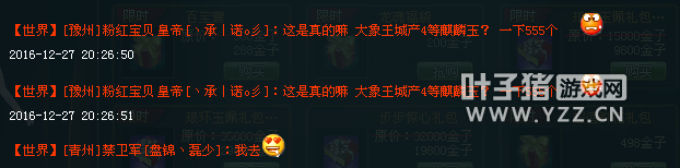 九州皇图的辉煌,以不合区为理由退服许久,也不整号,但是最近他的十八星都穿上了紫时装,并且每天晚上过了十二点都在七星潭三层打架,死磕。 在例行来豫州踩镖局的时候,掉了三个箱子。第一个箱子里有200个四等麒麟玉,一个有155个麒麟玉,还有一个有200。一共掉了555个麒麟玉。一个麒麟玉要135人民币,一共是74925人民币的金子。如果是银子买,74925锭银子,折合人民币现在是两万多三万。可谓是土豪有钱任性啊,上一次来砸车,在豫州掉了一个飞马,赚了一大笔。这一次又掉了几万人民币的麒麟玉!整个世界都刷满了谢谢老板!所以想赚钱的赶紧来九州皇图吧! 了解更多相关信息,请前往http://ylzt.yzz.cn/ [编辑:博博]