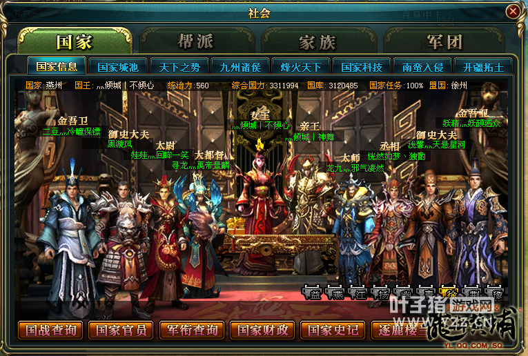 两大实力家族空降燕州夺王 据了解之前的燕州国王与青州交好,青州又是扬州、益州的敌对国家,所以益州管理就联系扬州战歌龙魂十七军家族想要打掉燕州王位,并且将扬州这个实力家族分离出扬州,彻底架空扬州。现在战歌龙魂十七军与辉煌国度这两个实力家族空降燕州,顺利夺下燕州王城,而燕州原国王帮没有进行反抗,毕竟这两个家族的实力早已超过整体燕州前国王帮的实力,所以放弃战斗也是理所应当的事情。 现在的燕州女王灬倾城丨不倾心原本就是战歌龙魂十七军家族的十八星神豪,现在她脱离战歌龙魂十七军家族,用小家族来控制帮派,意味有些深远,肯定不是与战歌龙魂十七军家族闹翻,想来应该是战歌龙魂十七军家族没有长久扎根燕州的打算,可能就是想要打掉燕州王而已。