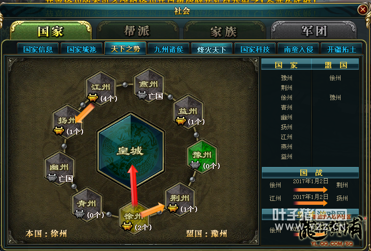 【美人如玉】一直以来都充满了激情的战斗气氛,这与战士们的勇猛作战是分不开的。徐州不畏强敌,勇于与荆州江州等强大国家对抗,这次的皇城战虽然失败了,但徐州人勇气可嘉。2016年再见,2017年继续努力,延续激情,相信最后的胜利必定属于百折不挠的国家。 [编辑:叶子猪小秘书]