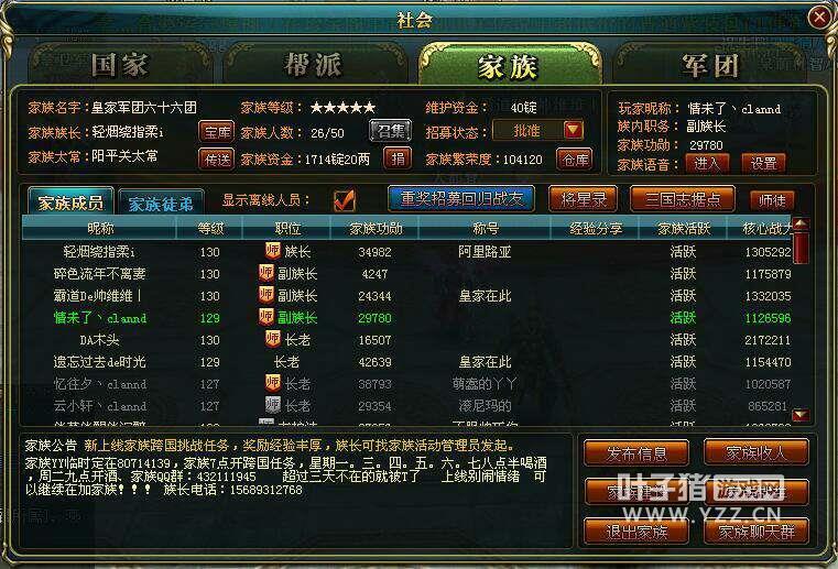 皇家军团66团曾经是势如破竹世界排名第一的家族,正在上演激情大戏。开服之后“皇家军团”家族经历了风风雨雨,族长“情圣”是一个煤老板,也是一位很重兄弟情谊的人。他用无比的热情去组建家族,呵护家族的成长。其实管理一个家族没有看上去那么容易,尤其是家族中还有不少脾气嚣张的大神,更有非主流的个性玩家。团结协作,步伐一致是从很多摩擦与战斗中培养出来的,家族前进的过程中有着非常明确的目标,家族成员不离不弃,很多御龙迷都清楚地知道,族长必定是一个有担当的灵魂人物,一个有血性的族长才可以成就一个勇敢的家族。“梦寐豪情”家族也曾经倍受敌对国家家族的挑战,多少次约战中立,从未畏惧敌人的强大。御龙就应该如此,先不论战斗力的强大,要的是敢于抗争的勇气,有了足够的勇气去应变一切才会慢慢强大起来。 【皇家军团66团:打造世界第一家族!】 族长情圣曾是老区的指挥,在势如破竹跟着老区的兄弟们一起玩耍,起初在势如破竹大手云集的时候他带着兄弟们冲进了世界榜前5,慢慢的随着封印有许多人退服在70级封印之后便成为了世界第一家族,一直到退服,世界第一家族都属于他们。 【皇家军团66团:打造世界第一家族!】 家族还有一个坚韧的信念,不管哪个兄弟不管装备和等级如何只要在敌国受到欺负,所有族人都会为此奋战,不论是高战还是萌萌。唯有团结才可以体现出家族的温暖,也正是这样彼此尊重,相互支持,吸引了很多志同道合的朋友。如今他们即将去新区107再次作战,创建新的辉煌,让我们拭目以待吧 了解更多相关信息,请前往http://ylzt.yzz.cn/ [编辑:博博]