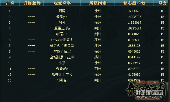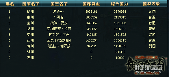 第二步:灭豫州(已完成) 豫州在合服的时候也与徐州关系尚好,国王洋葱还是御龙小有名气的玩家。后来豫州和燕州如出一辙与徐州产生矛盾,豫州也因为势力单薄在徐州的压制下开始邦国殄瘁,被逼上灭国绝境,终于在1月6日被徐州安排的家族和高战反王成功。1月8日徐州发动豫州灭国战,豫州亡国,又一个反帝国联盟国家灭国。 第三步:灭荆州(未完成) 荆州在燕州亡国之后,也因为和徐州矛盾,引起徐州不满。但荆州和青江联盟结盟,并时常在一起商讨抵御徐州事宜。徐州因为忌惮青江城池较多,于是徐州又安排部分高战和家族落地荆州反王,徐州在灭掉孤单豫州之后,又调入大批参与豫州反王的高战和家族进入荆州。原荆州王帮无法力战,转入江州国,荆州危在旦夕。