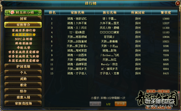 弑魂公会刚创建帮派便升级到2级,拥有6个家族,其中弑魂丶独家记忆、弑魂丨久伴不离、弑魂丶义丨风云三个家族更是占据家族国家排行榜前三,其实力可见一斑;天骄公会各家族的繁荣度虽然比不上弑魂,但也并不逊色多少,家族国家排行榜上不少天骄家族名列前茅,而且天骄高战众多,本国核心战力榜上第一页被天骄占据大半江山,整体实力也非同凡响。