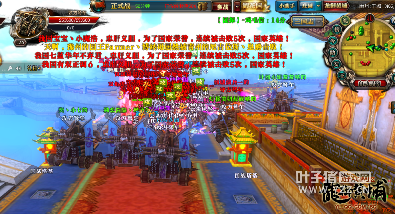 帝国益州算得上【沙场点兵】人数最多的国家,不过国家活动的时候,也有不少国民不听从指挥,导致国家指挥十分被动,采用极其麻烦的办法解决战斗,艰难的进行各项国家活动。 今天关注的是益州宣幽州国战,虽然幽州只是普通国,但是却有着盟国燕州帮忙,导致益州战车无法战胜幽州、燕州战车,益州只好骑兵模式,不断奔跑朱雀与玄武,打爆这两个神兽,从而一次次的磨血国家神兽,直至打爆国家神兽,获得国战胜利。