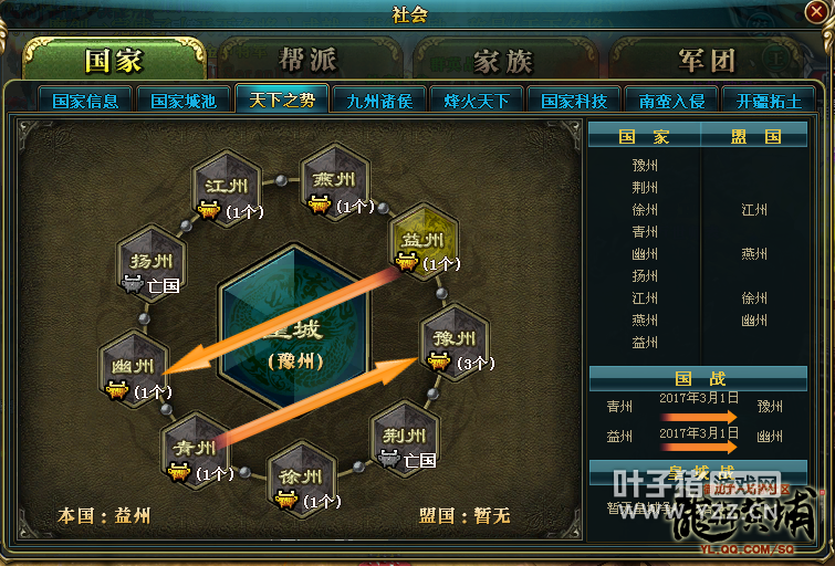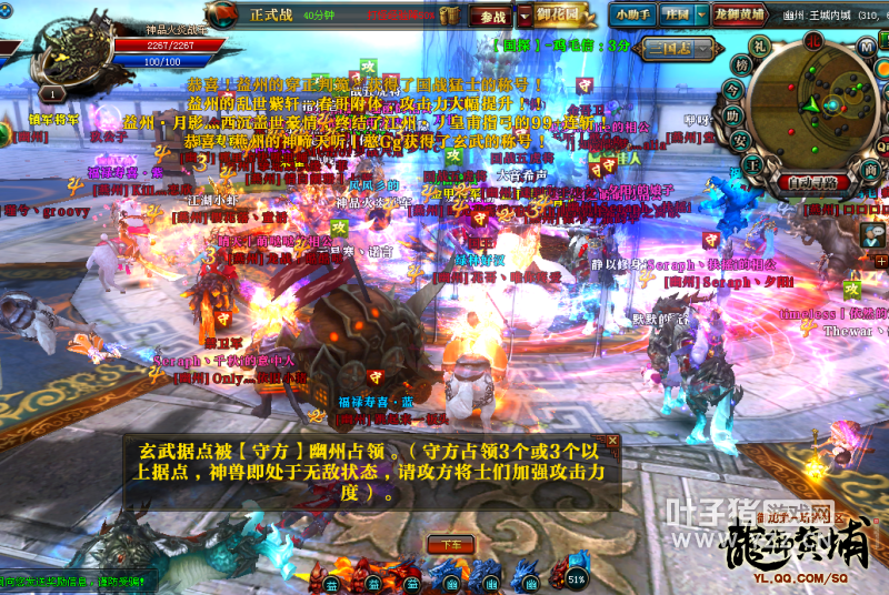益州不断打爆朱雀与玄武,乘机输出国家神兽 当益州感觉战车无法大幅度战胜幽州以后,开始骑兵模式攻进内城,分别进攻朱雀与玄武,并且第一时间打爆这两个神兽,激活国家神兽,然后益州大部队奔向国家神兽位置输出,但是幽州也努力的打回朱雀,使得国家神兽又处于无敌状态,益州只好继续派铁骑攻击朱雀,就这样两个国家一会围绕着朱雀战斗,又一会围绕着玄武战斗,只要益州同时占领这两个神兽,就会乘机输出国家神兽,国家神兽逐步掉血。