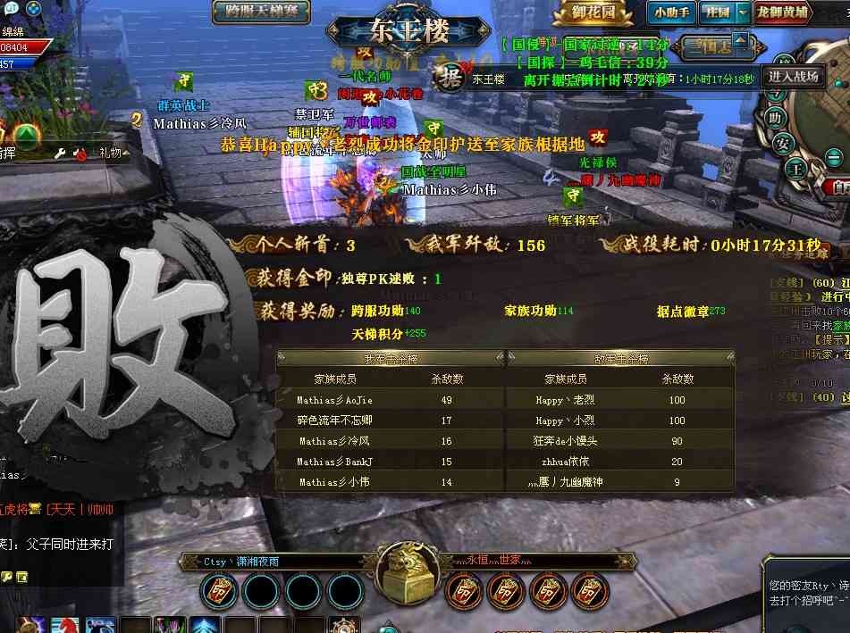 2016年3月6日,御龙在天最激情的大型战役三国志开战,这个是无数御龙战士最期待的对外跨服大战,同时家族三国据点也开放,通过抢夺据点就会收获非常丰厚的奖励。 双线三区朱雀战区【美人如玉】帝国徐州,在国王“Mathias彡AoJie”带领下的军团“大王叫我来巡山”非常强势打下秘宝城建安,在这个三国混乱的战火时期,收获宝贵的城池 徐州是一个非常强悍的国家,战斗作风一直以凶猛威驰九州。国王家族“Ctsy 、潇湘夜雨”更是国家著名的实力家族,不但拥有本服务器第一高战15星战将“Mathias彡AoJie”,而且还有以大都督“Mathias彡BankJ”为首的15星两套,12星的战士也众多,虽然才是130级封印,可是全国战士开服至今一直与死敌国家江州、荆州作战,战斗气势如虹。 这个家族总难道的就是非常的团结,在遇见重大战役与最艰苦的对抗中,总会倾尽全力投入作战,家族也成功抢夺了“东王楼”三级据点。 可是就是在3月7号,来自【王者天下】“灬永恒灬世家灬”发动了抢夺“东王楼”地皮据点战,这个家族也是非常奇葩的强力家族,虽然在线活跃度不如“Ctsy 、潇湘夜雨”,可是战斗力很强大,进入战场虽然才5名战士,可是就有2个18星战神,还有一名12星战士,参战人数与防守方家族差距少于4倍的情况下,依然体现出了意想不到的强悍。而且他们的对战很简单很明了,就是让18星的国王“Happy、老烈”负责抢夺金印,同样是18星的大都督“Happy、小烈”负责一路保护屠杀企图来抢劫的徐州战士。在个人战斗力明显劣势的徐州战士,唯有集体围拢“Happy、老烈”猛烈输出砍杀,让他无法正常抱着金印顺利到达终点。 只看见一群战士虽然集火18星战神,导致他一路前进一路死亡,让怀抱的金印掉落,趁机抢夺回去,可是,面对强力的18星输出速度,明显徐州根本无法可以抱得动金印就倒在路上,最终,“灬永恒灬世家灬”凭借两套18星的战斗神武,成功把四个金印抢夺回去,获得了“Ctsy 、潇湘夜雨”的“东王楼”地皮据点,大获全胜! 面对如此惨烈的对抗,徐州战士们也不得不服气,毕竟一个家族的全部兄弟们拼尽全力了,输在战斗力上,唯有以后不断壮大自己的战斗力去迎战激烈的御龙战场! 了解更多相关信息,请前往http://ylzt.yzz.cn/ [编辑:叶子猪猪少先队大队长]