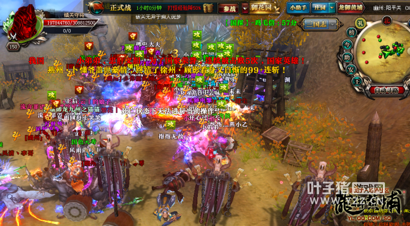 御龙在天各种活动比较多,所以可能会出现扎堆一起进行的时候,这时候就要检验一下国家国民的协作能力,必须听从指挥安排,有条不紊的完成每一项下达的指令,才能获得比较好的效果。 今天关注的【九州群英】燕州就是国战、砍大旗任务、【三国志】攻城战一起进行,燕州指挥沉着冷静的安排下,将三个任务完美进行。