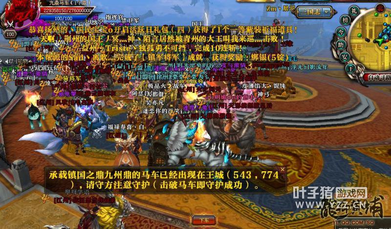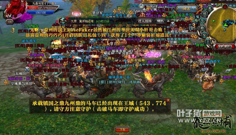 大鼎出现前,徐州和益州在王城郡守附近集合,准备保卫大鼎。很快,在徐州内城采集箱子的江州国民在指挥的带领之下浩浩荡荡压向王城郡守,准备运送大鼎,屠杀徐益联盟国民。大鼎出现,徐州勇士们起身奋力输出大鼎,眼看大鼎掉血很快,江州一时间似乎有一些慌乱,没想到徐州输出这么猛,但仍然没有放弃希望,继续和徐益联盟进行拼杀。大鼎到达西门血量早已过半,江州拿走徐州大鼎的希望也成为泡影,大鼎到达狗娃附近被爆,徐州守住了大鼎,举国欢腾,盟国频道贺电频频。