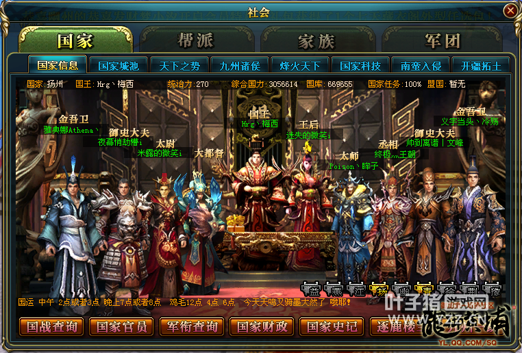 扬州原国王帮想法设法守王 如今扬州国王帮名字是十里桃花,并不是扬州原国王帮铜雀台丶剑指皇城,但是大量国家官员却都是出自铜雀台丶剑指皇城帮派,而造成现在的局面都是扬州原国王帮策划的,让小号帮派接手扬州王城,自己主力帮派伺机而动,等待外来打王帮派的下一步行动。 现在的扬州原国王帮不仅拉拢外援帮忙守王,而且还用主力帮派想要卡住王城,看来真的是想法设法的想要守住这个好不容易打下来的扬州王城。 总结:扬州国内的动荡,不仅让两个帮派的成员激情不断,也是这个服务器各方势力角逐的微缩体现。
