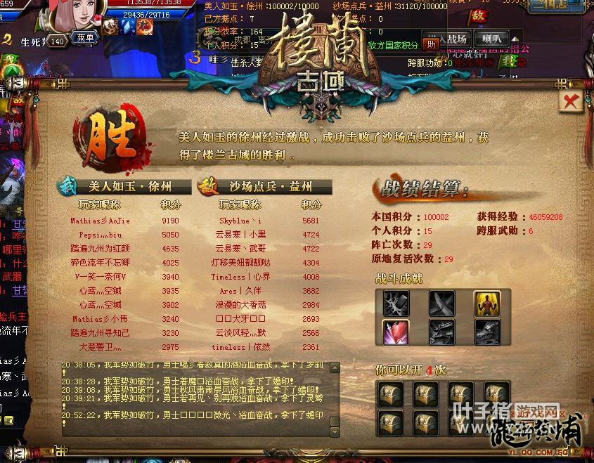 环视楼兰战场四周,【美人如玉】徐州的参战战士占据了很大优势,尤其是在中间据点上,他们以迅雷不及掩耳之势占领了据点,让积分领先于益州。益州虽然级别更高,装备也更换了更强大的,然而差在了参战战士的数量上,益州参战的战士明显与徐州不成比例,所以他们的战士需要来回奔波于各个据点间抢夺,在路上浪费了不少时间,而且还会出现被群殴的现象,所以积分一点点在拉开距离,不一会便落后严重。面对如此战况,益州唯有将胜算寄托在楼兰怪物的抢夺上。每击杀一个楼兰怪物给予的积分都非常高,如果有一波抢夺成功就会有大量的积分入账。当第一波怪物刷新在1点方向的时候被双方同时发现了,双方战士展开了激烈的争夺,拼的就是输出的速度与力度。人多力量大,徐州的战士输出非常猛烈,成功地打下第一波怪物,让积分又一次拉开距离,战况对于益州非常不利。
