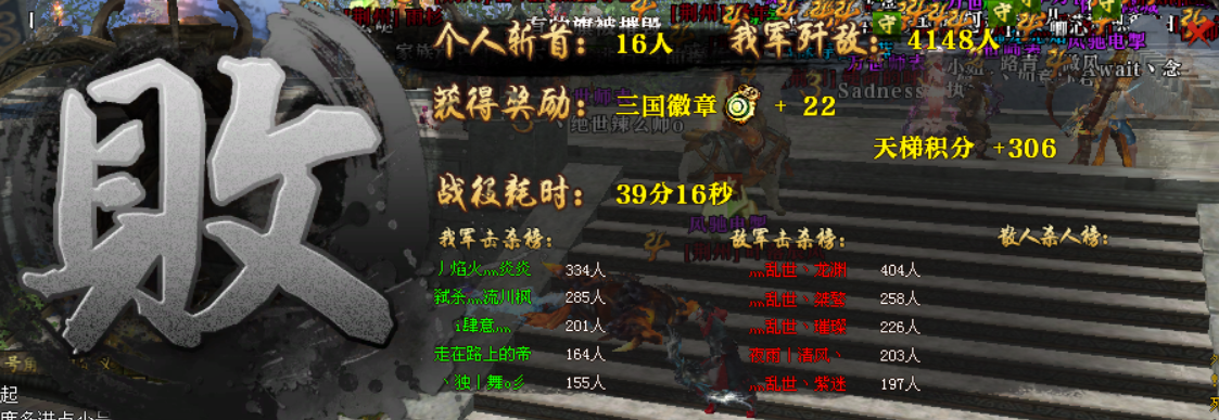 桃园风云内的激情永不缺乏,区内帝国荆州与徐州的战争正在如火如荼的进行中,双方之间的仇恨值已经达到那种根深蒂固的地步,故而在三国志开启之后,双方的战斗自然而然就转移到了三国志战场上,虽说徐州历经几次流放却始终锲而不舍的坚持落地在荆州城池旁边,其含义不言而喻。此番徐州落地三国志的城池为衡阳,与荆州城池衡山隔山而望,以二者的仇恨值而言惨烈的战斗在所难免。 果不自然,在落地衡阳第二天徐州就成功宣到了衡山却已惨败告终。“来而不往非礼也”实力强大的荆州怎么可能坐视徐州挑衅而无动于衷呢,于是在衡山战斗结束后便拿到了衡阳的进攻权,衡阳会战迫在眉睫。 在攻城战正式开始的时候,荆州便显示出了其实力所匹配的强大火力,短短数分钟城门告破。紧跟着荆州开启运送帅旗车,而徐州则是在城门口处围堵,双方围绕着帅旗车展开了一场持久的惨烈战斗。因此前三国志新版本的更新,让城池不再易攻难守反而易守难攻了,所以直接导致荆州的帅旗车往往到不了终点就被徐州砸没了,但荆州还是凭借着人数的优势成功送达了一辆旗车。徐州自然不甘示弱,虽然比不上荆州人数众多但聚集在一起也火力十足,让荆州的帅旗车久久不能送达重点,一时之间双方陷入了胶着状态。 但是就在双方陷入胶着战斗时,一点足以决定战斗胜负的因素突兀出现。虽然说徐州玩家奋力围堵荆州帅旗车,让荆州无法击杀BOSS,但却由于徐州本来人数较少所以士气略低,在经过如此高强度的战斗以及安全之后,士气下降的十分快,而荆州似乎也是逐渐采取用帅旗车消耗徐州玩家从而让徐州士气降为零从而取得胜利。不得不说,荆州的做法颇为有效。在帅旗车的威胁之下,徐州玩家在高额之后只能安全在跑来不然只能放任帅旗车送达重点,故而徐州指挥刻意保持士气却枉做无用功,最后在临结束10分钟前徐州士气降为八,衡阳守城失败。 但衡阳守城战徐州虽败犹荣,面对不管实力还是人数都是自己几倍的荆州,徐州历经50分钟只让荆州送达了两辆帅旗车,若非人数的差距让徐州士气成为了压倒徐州的一根稻草,这场战斗恐怕胜负难料。 了解更多相关信息,请前往http://ylzt.yzz.cn/ [编辑:叶子猪猪少先队大队长]