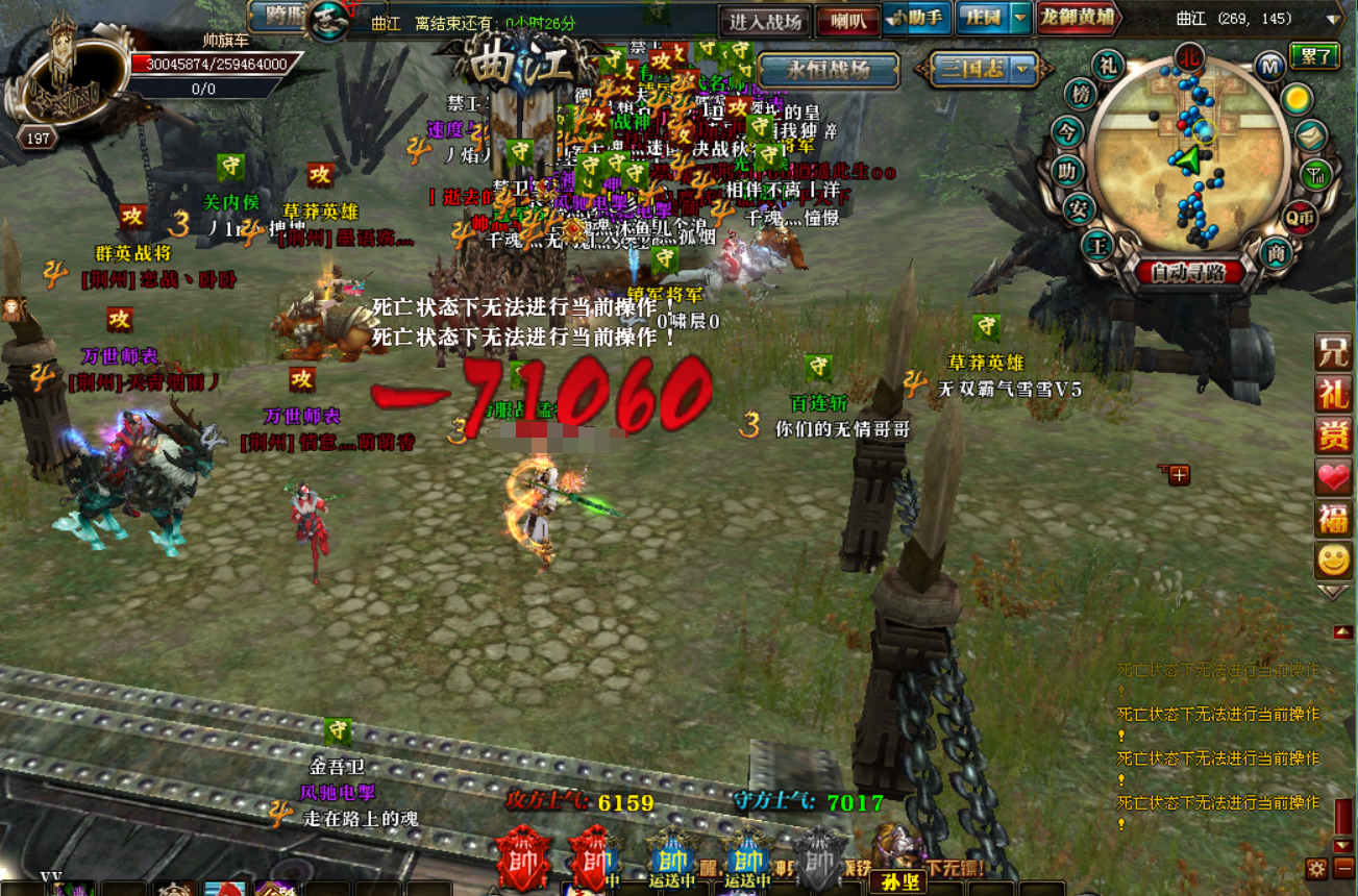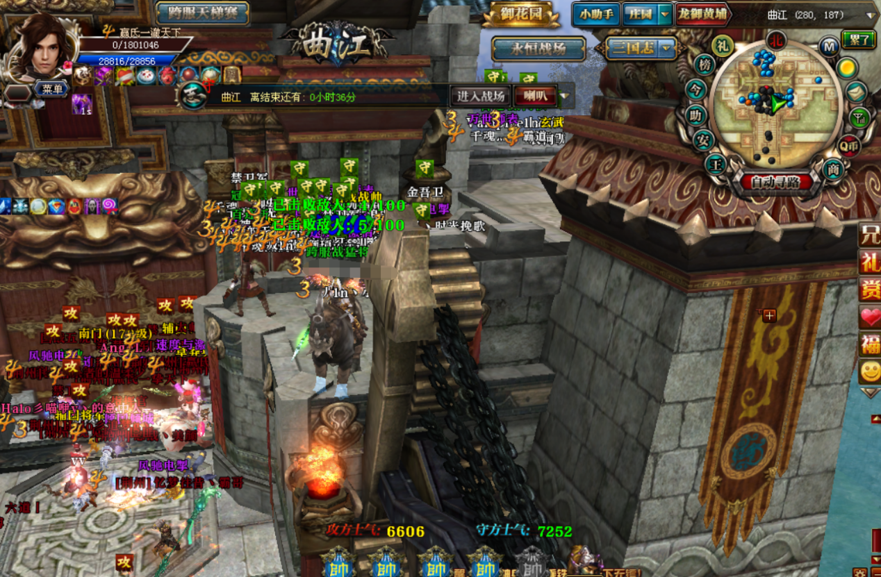 三国志中的2级城池曲江,虽让桃园风云徐州亮剑军团三次铩羽而归,但还是在第四次攻城战中陷落,由此亮剑军团打开了北上三国志大陆的道路,也成功为大本营南海铸造了一个雄关。然而,曲江周围的城主对徐州大多都是似敌非友,在曲江落到徐州手中之后已经经历了两次攻防战。今日,即将上演的是曲江第三场攻防战。 今天负责攻城的军团乃是龙舞四海著名神豪赢式一平天下率领的赢式军团,但是在昨日已经在曲江折戬一次但从其今天又发起攻城战的行为中可以预想到这次的攻城战赢式军团必定是有备而来,战斗也会惨烈无比。 在攻城战刚开始后,赢式军团陆陆续续有成员进来,但是赢式军团指挥却是采用了高战打门的优势战法减少自身普通玩家的消耗,在赢式军团多位十八星高战的火力输出下,城门仅仅坚持了数分钟便告破,赢式军团成员一路冲锋岛城池里打杀徐州玩家以及城内建筑,不到一分钟城内已经遍地大火,但是惨烈的战斗才即将开始。 在成功毁坏了城内建筑之后,赢式军团成员开领取帅旗车走向旗点,但是往往没过城门处就被砸没了,正当亮剑军团成员纳闷今日攻击不如昨日猛烈的时候,却发现赢式的火力渐渐强大了起来。原来赢式军团在这留了个心眼,因为亮剑与赢式互宣了城池,所以赢式军团有部分人去防守了自己的秘宝城临川怕被亮剑军团乘虚而入,导致了曲江的攻城力量有所不足。但即便这样赢式军团的众多精英高战也是给亮剑军团造成了不少的压力。 吸取了上次攻城战士气险些到零的教训后,亮剑军团的指挥让军团成员利用躺尸等车的战法而减缓士气的衰弱。而赢式军团的则不断有玩家领取帅旗车,赢式的高战们就聚拢在旗车周围屠杀红名,但屠杀的速度顶不住旗车下血的速度,帅旗车始终迟迟不能送到终点,双方围绕着帅旗车进行了无比惨烈的厮杀。 最后在临结束前的10分钟左右赢式成功送达了一辆帅旗车但也仅此而已。直到攻城结束后再无建树,亮剑军团再次成功防守住了曲江。不过很明显的在众多军团都对曲江虎视眈眈的情况下,亮剑军团常驻曲江的道路仍然还很遥远。 了解更多相关信息,请前往http://ylzt.yzz.cn/ [编辑:叶子猪猪少先队大队长]