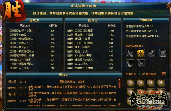 8点15分,国战正式开始,随着指挥一声令下,大批攻方国民下边幽州,等候多时的守方国民也拿起武器,给攻方以迎头痛击,双方一路厮杀,边境和阳平关口血流成河,由于守方主力都在防守边境,镇关守将被早已埋伏好的攻方国民快速爆掉,见此情景,攻方指挥命令国民放弃缠斗,点击参战进入幽州王城。 在大炮的辅助下,西门很快被爆,守方心知金甲将军撑不了多久,于是干脆放弃金甲,命令国民回到安全区领车点给盟国兄弟送车,少了守方的阻碍,攻方很快拿下了金甲将军,而此时攻方的战车队伍也已经在国民雕像位置集结完毕,谁知道攻方并没有打算跟守方战车死磕,而是骑兵模式进入密道,得到消息的守方指挥马上命令放弃战车防守内城,双方在朱雀和玄武位置再次展开交锋,由于已经进入90级封印状态,玩家的等级和装备品质都有了不小提升,神兽在攻方猛烈的炮火下很快两点齐爆,中央神兽被激活,不过守方反应十分迅速,马上拉令抢回了玄武,神兽再次恢复无敌状态。