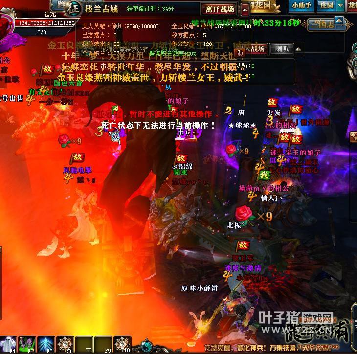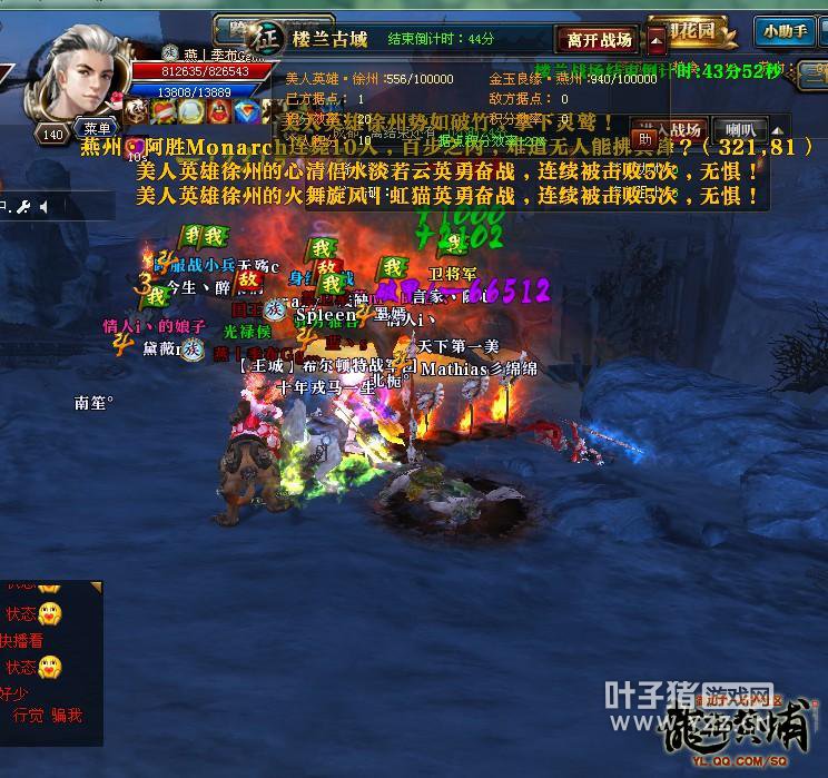 进入楼兰战场之后的徐州很明显可以看到,今天的参战人数很不理想,通过了解知道原来这个国家由于内部的矛盾,在前几天有几个家族约100号战士与前指挥官移民了,国家目前处于调整阶段,面对参战人数不足的情况,他们还是运用了首杀中间据点雕像的抢夺的战术。可是在与燕州的比拼之中,战斗力输出明显不如燕州,而且由于战斗力的不足,在各个据点雕像上抢夺很缓慢,积分落后。同时,燕州今天由于组织到位,战斗气势如虹,特别在中间与12点楼兰顶层安排重兵,很快就积分遥遥领先,形势大好!
