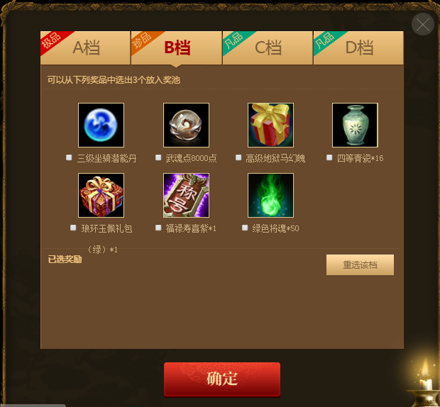 黄金宝箱又一次横空出世,但是和之前的黄金箱子都不同的是这一次的黄金秘宝箱是自己选奖励,下边让小编来给大家分析分析到底选哪个好。 在A档这里面其实是分人的。因为如果是大众来说,肯定是选择紫色副将和黄金精源这个是首选。因为黄金精源和副手是珍宝阁刷不出来的,必须通过活动才能有。而这一次新出了传人活动,传人也是需要装备,所以黄金精源肯定是比较好用的。而紫色副将也是比较必备的,因为目前来说没有人可以拿到所有的紫色副将,所以紫色副将也是很需要的。当然这是小编的优选,但是对于需要的人来说,还是按着自己当时的需要来。 在B档这里选择三个奖励。必选肯定是武魂点,这个8000的武魂点是大家都需要的。次选小编选择了绿色将魂,因为它虽然可以刷到,但是概率太低,所以值得选择,而第三档,小编认为,我会选择三等坐骑经验丹,因为我的坐骑潜能还没满,他能够提高我的战力。而地狱马,玉佩和福禄寿喜全是有时限的不考虑,4等青瓷16个一共只能洗3个五等石头,但是现在是充斥着六等的时代,所以这个我选择了潜能丹武魂和绿色将魂。 在C档这里,小编首选也是绿色将魂,因为这个也是比较珍惜的。第二个选择小编认为是奇楠香,因为披风十八星,肯定不是普遍的,所以奇楠香可选。第三个就看自己缺什么了,缺绑银的选绑银,需要霸王的选霸王,要整八卦的整八卦,这个是根据需要来! 在D档就是看自己需要的一个牌了。补天彩晶小编是选择了因为小编认为这个是日常必备。而双雄残片是适合小编去整水镜和张飞副将所以小编也选了,第三个因为小编缺绑银所以选了40D,第四个选择了龙吟石30个,小编觉得这个都比较实际但是缺经验的可以选择紫色鸡毛令箭和换镖令。 以上是小编的宝箱首选,仅供参考! 了解更多相关信息,请前往http://ylzt.yzz.cn/ [编辑:叶子猪小秘书]