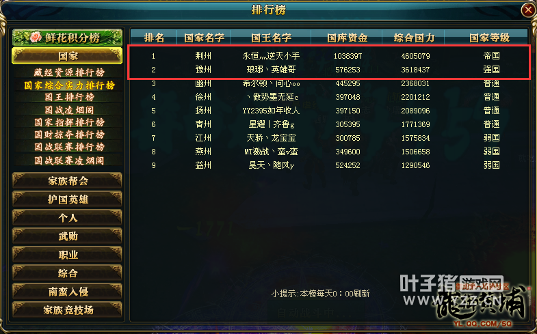 各国国力开始逐步稳定下来,国民们也在努力升级,不断提升自身装备。国家与国家的恩怨也开始显露出来。今天关注的荆州与豫州的野战,据说因为控制两个国家的公会互相仇视,所以早已互为敌对关系,这场战斗起源是豫州前往徐州阳平关砍大旗,荆州则组织大部队挑衅,两个国家于是在徐州阳平关大旗位置大打出手,场面热血澎湃,激情一波跟着一波的到来。
