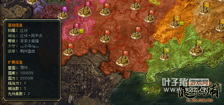 荆州一国对战江州、豫州两个国家 九州一统城池战只要是互为盟国,那么就可以帮助对方国家防御或者进攻城池,今天荆州要面对的就是江州、豫州两个国家。如此一来,荆州进攻压力不小,国内高战不多,人数也无法与两个国家相比,看来荆州这次宣战江州阳平关城池的做法不明智。