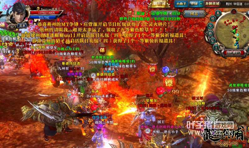 已经处于70级封印期间,国砸开始上演,在这个服务器的最强两个国家,帝国荆州与强国豫州之间展开,原本两个国家就矛盾不断,时常野战,仇恨一点点的升级。如今封印期间,国民需要激情,所以豫州、荆州两个国家直接撕破脸,开启国砸,也成为这个服务器激情的开始。