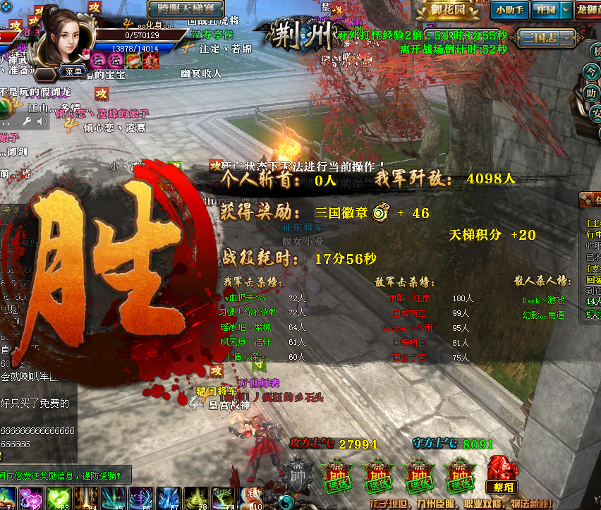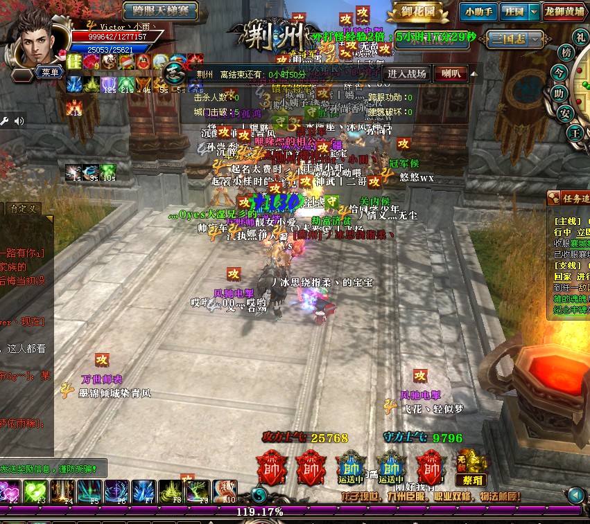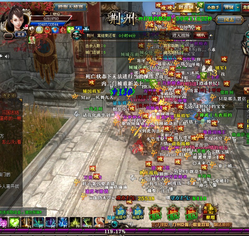 三国战场气势庞大,激情四射,是无数御龙战士做酷爱的大型战役之一,2017年5月7日经历数月的三国战役进入最后的冲刺,今天就是这期三国志的落幕之时,今天的战场也将会成为历史的见证。 御龙开服5年之久,作为最古老历史的双线一区青龙战区【龙啸九州】,级别已经是160封印阶段上停留一年多了,这里集中了众多的18星大神,特别是帝国豫州更是一家独大,战斗力爆棚,用“战无不胜,攻无不破”来形容这个国家绝对不是夸张。 今天让香馨一起陪同勇士们进入一场实力攻城大战,出战的【龙啸九州】豫州军团【光明圣殿】,他们将要攻打的燕州【帅楼】军团拥有的荆州城池!目前【光明圣殿】就占有了9座城池,假如成功攻破就会到达10座,在这期三国志上荣登版首第一名,为了这个无比光荣的成就巅峰,豫州统帅非常重视,早早就在各个通讯上呼吁战士们尽量参战,未来见证这个激情战役并御花园的也开启了全程直播。 进入荆州三国战场的豫州战士,果然非常强大,士气高达2W6左右,然而防守方只有约1W左右,从数据上比较就有很明显的差距。豫州的确强势,在领取帅旗车子之后就兵分两路分别一部分战士击打南门,帅旗车子在大部队战士的护送之下也杀到荆州东门,奋力输出大门,速度迅猛,火力强大,很快就把大门攻破杀到城中心,同时【帅楼】的战士也浴血奋战,抱团击杀帅旗车子,堵截了豫州的进攻步伐,然而在战斗力上比较,真的有很大差距,燕州在集火击爆几辆帅旗车子之后,面对豫州的东、南门口进攻,必须分散战斗力来回奔波防守,渐渐地的输出帅旗速度减弱,最终,豫州成功护送四辆车子到位,开始猛烈的击杀BOSS,此时此刻的防守方【帅楼】军团也无还手之力,只能眼睁睁无奈的接受痛失荆州城池的战况,豫州有强大无比的战斗力与执行力碾压抢夺成功,用时才10多分钟就获得三国志胜利。 随着三国战场这期的结算时间到达,【龙啸九州】豫州军团【光明圣殿】获得了傲人的辉煌成绩,排名版首,成为了当之无愧的御龙NO1国家,军团每一位勇士也获得了丰厚了三国奖励,举国欢腾,皆大欢喜。 作者 香馨 [编辑:叶子猪小秘书]