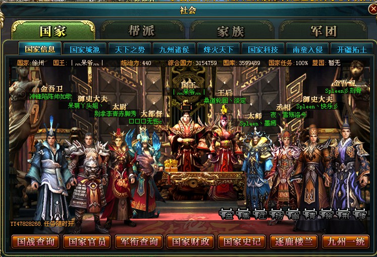 大型国战游戏御龙在天注定是弱肉强食环境中战斗,多少热血男儿为了实现一统天下的霸王之业,浴血奋战各个战场,运筹帷幄,决胜千里,成为一代英雄,爱国护民用行动让全国众将士听令于你。 双线三区朱雀战区【英雄美人】大帝国徐州国,绝对是一个充满传奇的国家,在激情与残酷的战场上上演着多姿多彩的故事。2017年5月14日,徐州又一次出现激情的竞争,一群有着爱国的勇敢汉子组成的帮会“你开心就好”发动宣战徐州国王帮王城战,徐州国力一直很强大,在这片充满热血的战土上,全国战士们也成就创造过无数的巅峰成就,无论是洛阳城皇城战役上荣获皇帝国家,还在大型楼兰战役上曾经收获楼兰王第一名,甚至三国志的战役上,徐州一直有着最精彩的辉煌战役,可是随着徐州内部各种原因,导致流失几个大家族,国家出现矛盾,在各自的游戏态度上与感受上也出现很多分歧,所以引发了徐州一场大规模的反王战。 “你开心就好”帮主“丨灬呆爷灬丨”是一个勇敢的汉子,他的御龙观念很清晰就是开心就好,他追逐的是御龙给予的单纯快乐,和兄弟们并肩作战的真诚友谊,其实在高手如林的【美人如玉】他的装备只能算是一个萌萌,可是他的内心世界是无比的强大,为了让兄弟们更好的感受把握游戏的节奏,他不顾流言蜚语,是是非非,依然勇敢的带领朋友们发动反王宣战,其实在两个帮会的战斗力上比较,他们还是比较劣势的,可是敢打敢拼的团结精神也成就了胜利与成功。 在御龙的战场胜利永远属于团结有执行力的勇敢者,“丨灬呆爷灬丨”成功战胜原国王帮,成为了徐州新的最高统帅,也意味着最艰难的御龙之路开启,也由于徐州的换王,洛阳城皇帝自动下位,所以在“丨灬呆爷灬丨”的责任上更是最大,徐州的未来将要怎么样发展,又如何与强大的敌对国家作战等等,都是非常严峻的考验,“丨灬呆爷灬丨”认为:每一个真正的御龙战士是敢于面对挑战,与兄弟们快乐战斗才是最高的快乐,一切的流言蜚语必定甚至战斗,必定会用鲜血改写历史,让我们祝福新的徐州,祝福“丨灬呆爷灬丨”带领上的兄弟们重新发挥徐州勇敢顽强的战斗作风,战出一片辉煌的天下。 作者 香馨 [编辑:叶子猪小秘书]