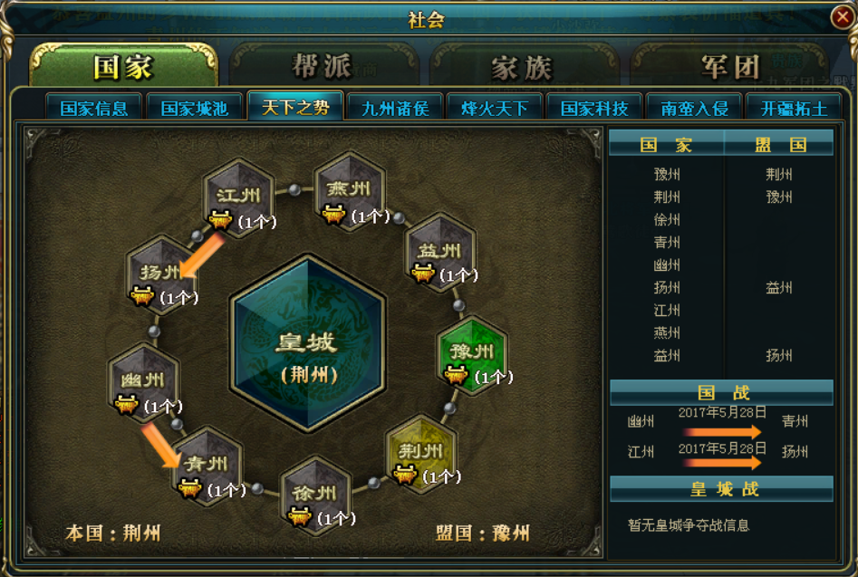 桃园风云自合区以来就不知道安稳是何意!区内先后数场大战让整个大区充满了战争硝烟的味道,现在的桃园虽然战火小了点,但是也是有着燎原之势,今天哦将会大家带来桃园风云最近九国势力对战分析。 现在的桃园风云最强大的阵营依旧以荆州帝国为首,青州幽州燕州豫州辅佐,其后则是扬州益达势力,最后就是独行侠的江州以及徐州。而目前区内的对战局势大概分为三个战场:扬州益达自合区以后就一直保持着亲密的战友关系知道现在仍然如故,因为益达与燕子之间的战争,扬州也不好作壁上观,偶尔也会拍高战去帮助益达打压一下燕州,形成了扬州益达SV燕州的战局。 而荆州为了保护豫州放弃了青州转与豫州结盟,甚至不惜与当时的徐州开战,形成了荆州豫州SV徐州的战局。幽州与江州则是有化解不掉的恩怨,双方打打停停数次最后终成不死不休的激怒面,形成了幽州VS江州的战局。 而这三处战场中,以荆州豫州对战徐州最为激烈,荆州仗着自身强大的实力无情的碾压这徐州,但徐州就像是个弹簧一般把压力尽数还给了豫州,双方目前仍处于互相伤害战争之中。扬州益达VS燕州次之,燕州的实力本就不出众,在经历了如此长时间的战争更是有些力不从心,更何况还是1V2得战局,所以几乎呈现一面倒。最后幽州VS江州则是最胶着的战争,幽州虽然比江州多电视里但也经常被江州迎头痛击,双方打的绘声绘色却总也分不出胜负。 细看之下,九国之中只有青州没有卷入战争泥潭之中,实则青州的情况也不是很好,前阶段国内的高战一区荆州不复还,又素与扬州有间隙,所以青州女王经常被扬州高战围堵安全,但青州女王倒也沉得住性子,始终不开启战争,不知道有何想法,但明眼人也看的出来青州卷入战争是迟早的事/ [编辑:叶子猪小秘书]