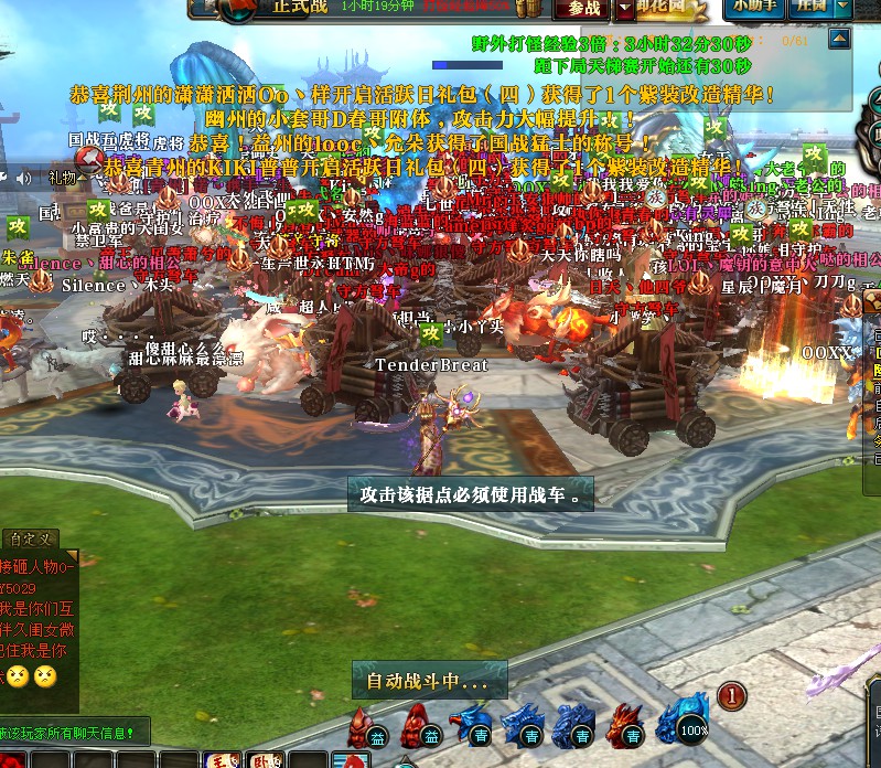 作者 香馨 经典服务器【铁马金戈】战事频繁,激情四射,经常上演大型激烈的国战,今天香馨与朋友们观摩的是来自益州国发动进攻青州的一场激烈国战。 益州在服务器属于普通国,目前没有盟国,国家的特点就是无比的团结,总会在艰难的战役上最大化爆发出战斗力。然后青州的国力是强国,国家高战不少,同时还有盟国豫州的支援,虽然豫州在同一时间也有自己本国一场国战,可是铁盟配合已久,肯定有着战斗力的分配,所以今天晚上的国战就是益州1V2的出战,无论是战斗力上还是参战战士都是劣势一点。 益州非常真实,在国战之前就提前做好部署,指挥官“凌哥”更是发出指令,要求全国战士不可以存在刷个人成就的行为,一切以国家尊严为重。所以,在冲刺青州的阳平关上益州表现的非常勇敢,进攻步伐迅猛,秒杀镇关守将杀至青州王城。青州也一切以防守为主,及时退回去内城领取战车死守入口,随时堵杀益州战车。由于青州本国迎战有着拉令与瞬移的优势,所以在战车部队上占据优势的。 这是对于益州是严峻的考验,必须拿出铁一般的勇者意志才可以战胜敌人,只看见益州不断在转换进攻模式,高战人物击杀朱雀玄武,双开兄弟就领取战车冲杀白虎青龙,战的如火如荼,战场四周血流成河。 同样青州也知道面对敌人的强势进攻,特别是国战易攻难守的情况,必须勇敢去迎战,哪怕战到血淋淋,也要捍卫国家的尊严,所以,青州战士们的执行力也非常到位,顶住一波波的猛烈进攻。 残酷的国战比拼中勇敢的同时,也比拼战斗技巧,益州在这次的国战上指挥官发挥了 灵活进攻,多次战车声东击西,高战多次双杀朱雀玄武牵制着青州的防守,最终撕破了青州的防守,成功击杀中间神兽,收获了国战的胜利,只是有一点遗憾,已经超过正式国战时间,没有机会拉起青州大鼎,只能期待下一次的交战。 [编辑:叶子猪小秘书]