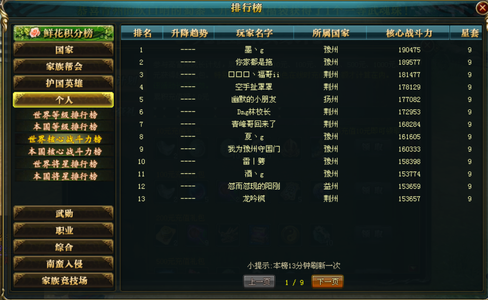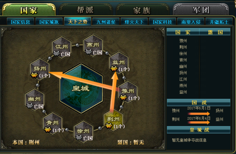 经典二区的新服务器势不可挡于五月二十六号正式开服,开区以来激情无限,本区有数个工会下区,分别有狼族工会,战盟工会,明星工会,琅琊工会等入驻该服务器,各大工会的入驻,使得该区下区人数众多,这也正好符合国战游戏的主题,毕竟每位御龙在天的玩家不论是新手还是老司机都是想体验到国战游戏的兄弟之情和国战的激情。 根据国力图可以看出来,势不可挡这个区依旧是延续了近几个新开区的形势,依旧是狼族稳稳地坐镇帝国荆州,以八百万的国力傲视全服,排名2、3名的国家分别是战盟和明星网游公会相差不多的国力,稳居二三名宝座,排名垫底的两个国家分别是豫州和扬州,不过整体国力来说,与二三名相差不太大。除了荆州一家独大以外,其余各国都保持着均势的情况。 从家族来看,荆州不出意外占了世界榜的绝大多数,说明国民的玩家执行力都比较高,整体国家的综合实力很强,想必在各个战斗之中都能够占据绝对的优势,扬州作为国力垫底的国家,却在世界家族榜第一页拿到两个宝座,这说明虽然扬州的国民基数相对较少,但是活跃玩家并不逊色于其他国家。 从高战实力上来讲,不起眼的豫州在世界榜第一页占据了六个席位,并且包揽了第一和第二两个高战神豪玩家,荆州国的高战数量依旧众多,这也决定了荆州在本区的统治地位。 目前皇城还属于无人占领的状态,不出意外的话,荆州国应该是稳稳地拿下皇城,本区现在的局势还不太明朗,后期会如何发展,请关注小编后续报道! [编辑:叶子猪小秘书]
