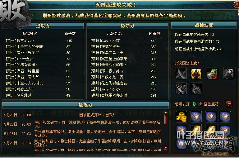 从整场灭国战来看,荆州已经尽力了,但最后却因为资源匮乏,没能再加时成功,燕州玉玺未出,燕州国运绵延,益州调入燕州的高战也没能发挥其守玉玺的用途,让人意犹未尽。荆州已经决定再发燕州灭国战,对与资源问题也会解决,期待下一次荆燕的激情交锋。 [编辑:叶子猪小秘书]