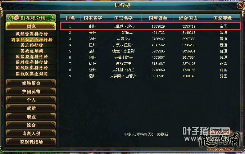 荆州国民高战众多,拥有站稳皇城的资本 如今的帝国荆州国力拥有520多万,架空其他国家,造就这个服务器没有强国可以有机会超越荆州国力。拥有这个高的国力,充分说明荆州人员众多,国内高战也同样比比皆是,高繁荣度的家族也是一个接着一个,打造荆州不错的国家战斗力。荆州如今的实力,足可以守住皇城,即使其他敌对国家想要挑战皇城,荆州可以顺利打爆三路玉玺马车,不给敌对国家任何机会。