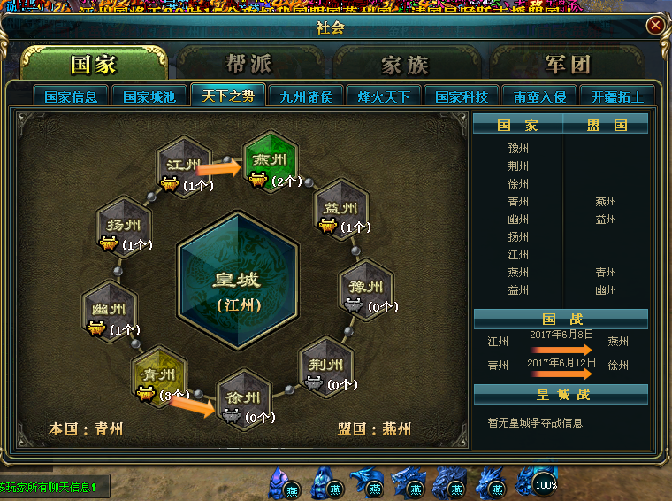 作者 香馨 双线三区朱雀战区【英雄美人】已经进入140级封印,各国也经历数月的战火洗礼,风云突变的对立国力,如今战斗力上与国力上逐步平稳,帝国江州一家独大,无论在怎么样上战役总是表现的很强悍,可以说指那打那,用战无不胜攻无不克来形容如今的江州一点不为过。 2017年6月8日江州在没有盟国的情况下强势发动进攻死敌国家燕州开战,燕州虽然国力比较弱小,可是他们有着铁盟青州的支援,总体的实力很与江州旗鼓相当的,比较青州有着几位个人战斗力世界前几名,下面就让香馨与朋友们一起进入战场观摩。 晚上8.10分钟江州大部队就浩浩荡荡杀到燕州阳平关,一路无视红名的堵截,杀到燕州镇关守将,并在国战开启之后的一分钟就秒杀镇关守将,直杀到燕州王城,进攻步伐速度与猛烈。 然而燕州与青州也非常及时的回防领取国战弩车,并组队一起,方便给予战车打强力,他们堵截在大鼎前面,随时做好点杀红名战车的准备。同时,江州的战车也黑压压直压上来,双方展开激烈的战车大战,不过很明显江州的战车部队是占据优势的,在参战的人数上是压制着燕州与青州的,所以,一波之后,燕州的战车基本上全部被击爆,只能退防到王城内城,然后重新领取战车围拢内城入口。这个时间,江州比没有很着急压到内城,他们重新调整战斗力,安排一部分高战人物进攻方式杀到朱雀玄武,战车部队就分别在大鼎攻入内城冲到白虎,这个时候对于燕州的防守是非常吃力的,必须分出战斗力去同时防守三个BOSS,本来参战战士就不如江州,徐州战斗力又一分散,所以让江州双爆朱雀玄武开始进攻中间神兽,而且江州的战斗力很猛烈输出力量很强,虽然燕州拉令瞬移击杀回去朱雀,开始第一波就让江州打到神兽78%血量,效果非常明显。 江州更是加大战车进攻节奏,全国战士们集体领取战场,顶住燕州战车的点杀,也双爆白虎与青龙,战况对于燕州非常不利,虽然及时给予神兽加血,可是无奈在防守战斗力有差距的情况下,无法阻挡江州的进攻,国战失败,进入保护国家大鼎环节。 大鼎关乎国家的命运,所以燕州与青州不顾国战的劳累,马不停蹄来到王城据守处,一面与江州战士厮杀,一面等待大鼎出现,这是血淋淋的对抗,勇敢的燕州战士用生命与鲜血不断的击打大鼎,最终击爆大鼎,捍卫了燕州的尊严。 江州的确是当之无愧的帝国,在单枪匹马的1VS2国战上,表现出巨大的战斗力,不得不让 【英雄美人】各国佩服。 [编辑:叶子猪小秘书]