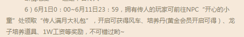 龙生九子,各个有妙招。九子自带双修天赋,职业双修即将开启,物法兼顾,一键切换,近程远攻任君选择。自此,吾修吾之道,吾杀戮四方;吾洒吾热血,吾一往无前。九子应世,新的时代已然来临!已婚的玩家组队可前往月老附近的“送子观音”处,完成对应“求子任务”后,可以孕育龙的传人。未婚的玩家也可以前往“送子观音”处领取“广结善缘求子任务”,完成后可获得一个龙之传人。每一个龙之传人都能给人增加不少的战力,哪怕只是砸个九星都可以增加100W以上的战力,所以拥有一个龙子是必不可少的。但是小编想说的是龙子的加成是有前提的,必须亲密度1000以上才会有加成,不然加成就会减半或者是失效,亲密度为0以后,你的传人宝宝可是会失踪哦!下面让小编来给大家介绍几种提升传人亲密度的方法吧! Part1.日常打无赖 每天早上的九点开始到晚上十一点,每个两个小时都会刷新一次无赖。无赖身上一定会爆毽子,小人书,风车等增加亲密度的东西,还会掉培养丹,金砖,琴谱,糖果等等。而且小人书,毽子,风车的爆率不是一次爆一个,而是一次可以爆好多个哦!人品好,爆三个风车,一天的亲密度都不用愁了!但是更新之后,无赖变少了,最好是组队哦,组队打怪又快掉率一样哦! Part2.抓小捣蛋鬼变礼物 每天早上从七点半开始,也是两个小时一波在王城会出现好多的小捣蛋鬼,他们可能出现在大旗旁,可能出现在金甲将军,可能出现在护国寺,也有可能出现在海边,刷的地点都是随机的,但是东西不是随机的!他们每一次都出现30分钟,只要去采集就可以了!这是一个提升亲密度最快的方法,因为如果你缺绑银,还打不过无赖,那采集小捣蛋是最快提升亲密度的行为! Part3.王城领礼包 自从龙子问世以来,各种各样的礼包都是必不可少的。而且每次都送大量的礼物。这一次六一节是十个风车,有时候是风车小人书,毽子对半,所以每一次更新后的礼包都不能忘记领哦! Part4.绑银买买买 花绑银买毽子可以说是最简单也是最粗暴的方法了!一个毽子从原来的两点到现在的五点亲密度大大增加了,也相对于比较的划算,如果有绿色绑银的人,用这个方法最快了!有钱就是任性! Part5.中立区买玩具 中立区买买买,应该是除了绑银以外,最快获得玩具的方法!但是这要看摆摊的人多不多了!如果摆摊的人多而且价格合理的话,直接买对于不差钱的人来说是最简洁的方法了! 好了小编总结了那么多方法去提升亲密度,可以选择你最需要的来选择提升哦!而且亲密度满2000还能过成就千万不要忘记了~! [编辑:叶子猪小秘书]