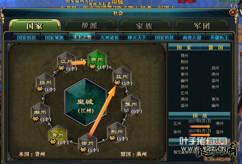 在残酷血腥的御龙战场,很多事情都要靠实力说话。双线三区朱雀战区【英雄美人】帝国江州不但一家独大,而且战斗力非常强,战斗作风也很强悍,开服至今140级封印阶段了,一直屹立不倒。 2017年6月1日,江州又一次强势发起进攻燕州国战,江州目前没有盟国,所以今天晚上是需要单枪匹马进攻。反观燕州虽然国力不是特别高,但是有着铁盟青州的支援,在总体战斗力上也不弱。在1V2的国战上,想获得胜利就必须全方面的将战术执行到位,下面就让依卡陪同朋友们一起进入激情的国战战场一同观战。