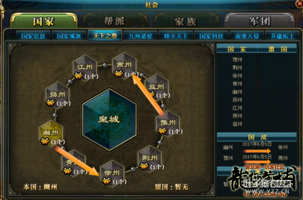 守方指挥命令国民领车大鼎位置集结,攻方指挥也率领战车队伍来到国王雕像位置,简单集结之后,攻方战车开始对大鼎发起攻击,守方自不会坐以待毙,双方战车厮杀在一起,由于守方占据地利,攻方战车渐渐不敌,很快被消灭殆尽,攻方指挥见战车攻势效果不佳,于是改变策略,国王帮骑兵模式奔袭内城,前往抢夺朱雀和玄武,反王帮领取战车抢夺青龙,这让守方也必须兵分两路,防御力大减,中央神兽很快被激活,守方指挥马上玄武拉令,带人抢夺玄武,但是由于不少人还在战车上,无法及时赶到玄武,最终当玄武夺回之时,神兽已经被打掉30%左右的血量。 攻方见这招效果不错,继续兵分两路抢夺四方神兽,守方指挥一人,需要面对攻方两个套路完全不同的指挥,让他头疼不已,只能被动跟随攻方的脚步防守,中央神兽一次次被激活,但是守方指挥经验丰富,将重点放在了朱雀和玄武的防守,由于守方占据瞬移优势,能迅速夺回人物神兽,使得中央神兽掉血速度缓慢,攻方指挥见状,只得再次领取战车,两个帮派分别从大鼎和密道进入内城,这一次效果非常好,白虎被打成了残血,攻方继续如法炮制,打残了青龙,此时守方知道大势已去,但是并没有打算放弃,因为距离国战结束,时间已经不多,可惜天不遂人愿,在国战即将结束的时候,攻方打掉了神兽最后一丝血,幽州拿下了本场国战的胜利。