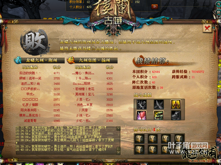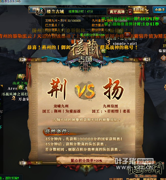 楼兰【龙啸九州】荆州不敌【九州皇图】扬州
