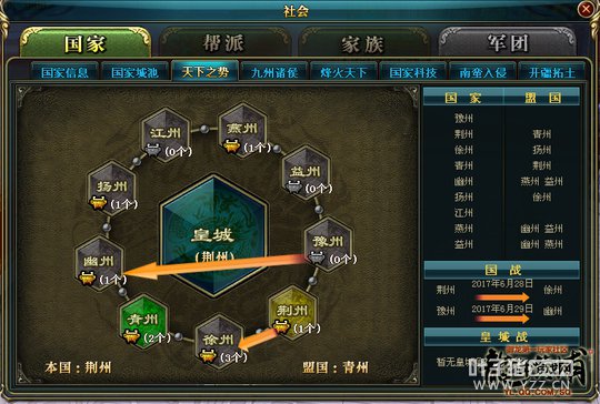 【龙生九子】的帝国荆州进行国战一般都会轻松获胜,很少有挑战性,所以帝国荆州也很期待一场势均力敌的战斗。 今天关注的【龙生九子】荆州宣战徐州,徐州与荆州互为敌对关系,再加上徐州还有盟国扬州帮助,荆州则不用盟国,想要一国打两国,看看敌对徐州究竟能防御如何,因此两方上演精彩博弈,你来我往,尽显激烈厮杀,不过荆州一直主导国战走向,最终也获得国战胜利,当然徐州、扬州防御也值得赞许。