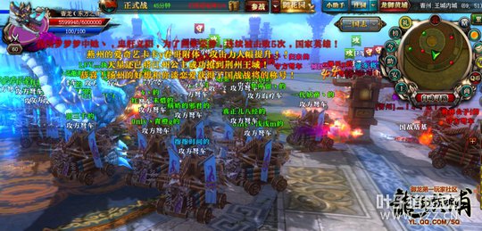 扬州与青州战车比拼 当扬州休整一番,开始领取战车,青州也快速回防领取战车,两个国家都很积极,不过此时金甲将军复活点还有不少青州国民没有领取战车,而是继续杀着扬州国民,看来青州国民执行力还是不算太到位。随后扬州战车与青州战车交锋青州内城,很明显扬州战车更多,青州被压制,不过扬州指挥还是不满意,继续动员国民领车。