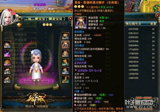 御龙在天虽然说十八星已经不稀奇,但是随着人物、副将、加上龙子三套装备的出现,神豪们开始追求砸上三套十八星的极限挑战,并且多位神豪已经完成,其中一位三套十八星的女神的现身,更让御龙族们倍加关注,她就是【雄图霸业】的灬战灬舞宝宝(以下简称战舞)。战舞不仅是位白富美,而且还非常追求极致的战斗力,所以她的战斗力不断攀升,成为御龙在天最强女神。