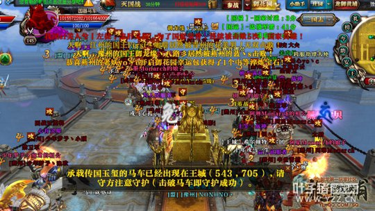 很快中间神兽被爆,四分钟后,承载豫州国之命运的国器马车出现,豫州只有少数热血男儿参与防守,盟国青州也并没有参与支援,国器马车在少数玩家的输出下,掉血很慢很慢,但他们仍然在不断奋力起身,顶着燕州数倍于自己战力和数量玩家的屠戮,坚持输出国器马车,眼看着马车离阳平关越来越近,豫州灭国依然成为现实。豫州灭国之后,各国开始在世界上收人,而做为豫州盟国的青州,单看国王的名字,对燕州也是恨之入骨,对豫州灭国显得又有一些无可奈何。