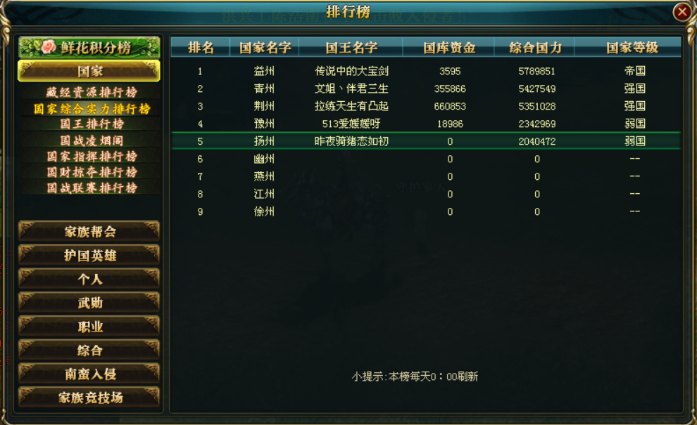 前言: 龙子现世开区以来已经接近三个月的时间了,区内发展较为平静,一直没有大的风波。以帝国荆州在区内独占鳌首,其他四国一直对帝国荆州不时地爆发小规模的团战,企图打压荆州的实力。在荆州国王拉练的带领下,荆州完成了九鼎归一,占据皇城洛阳等成就。 通过国力来看荆州排行第三,但是这并不说明荆州的实力在这个区就是第三。论战斗能力荆州无论是在高战方面还是人数方面都占据着绝对的优势。所以在对抗以豫州国王513为首的另一势力的过程中,一直处于上风。荆州实力强的另外一方面是在国王的带领下执行力很高,每个国民玩家都有很高的执行力。 从目前的情况来看,本区的情况是荆州一家独大,对抗益州,青州,豫州三个国家。扬州方面目前保持的比较中立。虽然说荆州的实力非常强,但是同时对抗三个国家,有的时候还是会力不从心。 世界战力榜可以看出来现在荆州联盟和豫州联盟在顶尖高战方面是五五开的局面,这也造就了荆州在对抗其他三国进行野战的方面依旧是比较吃力的。这也增添了本区的激情,提高了本区的活跃气氛,否则如果都是养老的话,就不符合国战游戏的主题。 目前豫州国王513坐拥皇城洛阳,相信在不久两大阵营将会对皇城洛阳展开进一步的争夺战。预知后事如何请关注叶子猪后续报道! [编辑:叶子猪小秘书]