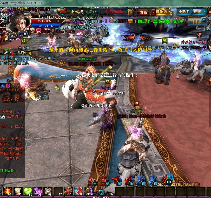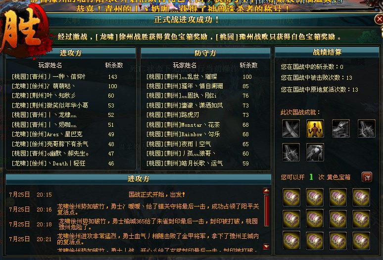 作者 香馨 2017年7月25日8.15分,双线一区青龙战区【龙啸九州】徐州携手盟国荆州,以及互通服务器的【桃园风云】盟国青州强势发动进攻【桃园风云】豫州国战开打。自从开通互通合纵连横之后,老区呈现出前所未有的国战激情。 徐州是一个非常强悍的国家,虽然国力不是很高,可是一直非常勇敢,与荆州也合作已久,如今更有了青州的联盟,战斗力上与战士士气更为高亢,战斗热情更是爆棚,勇气更上一层楼。在看见徐州荆州战士们通过中立互通传送官到达【桃园风云】中立,马上马不停蹄的奔赴豫州边境,一路不停留杀到豫州阳平关,有秒杀的速度击杀镇关守将杀到豫州王城,进攻步伐非常迅猛。 三国联盟的确非常强力,他们在执行力也非常到位,很快击杀金甲将军,集中火力开始进攻豫州王城内城。 面对三国的强势进攻,豫州表现的很淡定,他们在王城内城准备着,可是并没有看见他们的盟友前来支援,所以在参战人数参与劣势,在抵抗上很吃力的。可是他们也抱着尽心尽力的迎战精神,围拢朱雀玄武砍杀红名战士,尽量拖延敌人的进攻,并收获个人国战成就和大量武勋。 徐州看见豫州的防守力度不是很强,也决定为了争取国战时间,决定来强硬的人物进攻,所以并没有领取国战弩车,直接就凭借着人多势众,奋力输出朱雀玄武,并双杀,然后大部队浩浩荡荡杀到豫州中间神兽。 豫州马上拉起帮令瞬移到朱雀,抱团集中战力奋力击打抢夺,然后总体的输出力量不够,虽然成功击杀了,可是神兽第一波血量就被打到48%,战况危之。最后徐州与荆州青州更是加大进攻节奏,高战纷纷飞奔到朱雀,砍杀豫州战士,成功击杀朱雀,两波两个来回就把豫州神兽击杀,用势如破竹的神勇获得国战胜利。 碾压的速度,多少让豫州战士很沮丧。可是御龙的战场永远是残酷的,一切用武力决定!豫州加油吧! [编辑:叶子猪小秘书]