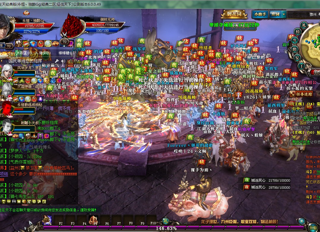 作者 香馨 经典二区全新服务器【征伐天下】开服不到一周,进入70级破封阶段,战士们正处于无限鸡血激情,特别在对于自我利益的王城战上更是表现的热血沸腾。几天小编与朋友们全程观战的激情王城战是豫州的国王帮“永恒、王者归来”和反王帮“极炫、征伐天下”的精彩对战。 豫州是一个非常活跃的国家,一直以来存在着很激烈的竞争,开服第二天国王帮“永恒、王者归来”就凭借着兄弟们的活跃手动积极得到了帮会繁荣度,宣战王城战成功,成为了【征伐天下】首任最高统帅,这个帮会的特点就是非常团结,虽然土豪神豪玩家不是很多,可是他们在大型战役上,在建设与保护豫州上做出了很大贡献。 然后反王帮“极炫、征伐天下”帮会这次是充分准备好挑战王城,他们已经筹备多日,通过各国招兵买马,加强帮会的战斗力,不惜投入重金打造装备,所以这个帮会的高战大号是占据优势的,几天晚上更是无限召集兄弟们立下作战誓言,要血拼到底。 晚上6.30分钟,豫州王城人头汹涌,双方勇士随时准备好吃好BUFF 、组好队伍,进入王城战场,在看见双方奋力输出自己家复活点的BOSS,然后不约而同的冲杀到中间的御龙元帅,展开激烈的抢夺,王城战的积分来源BOSS,成功击杀就会给予本方积分,同时的谁最后一下击杀就属于哪个帮会的,所以抢夺是非常激烈的,在看见战场尸野满地,鲜血淋漓。虽然国王帮成功抢夺到了中间BOSS,可是反王帮“极炫、征伐天下”的战斗力输出更为强大,他们很快就反击抢夺回来,积分领先。 两个帮会的参战部署不一样,在看见国王帮会前期不断分散战斗力,五个BOSS方便抢夺,所以很明显输出力度不够,然后反王帮“极炫、征伐天下”就基本上是抱团进攻的,他们很聪明的选择首杀双倍积分的御林元帅,然后又安排高战四处抢夺另外的BOSS,最后是通过洗双高复活才击打就自己门口的BOSS,所以这样的出战效果很明显,积分一路领先,并慢慢拉开差距,国王帮战况非常不利。 落后之后的国王帮也尝试不断转换进攻模式,无奈在总体战斗力上很明显不如反王帮“极炫、征伐天下”,而且今天晚上永恒、王者归来”很多参战的战士并不是特别积极,在安全期竟然有不少的战士们在发呆,导致积分被拉到差距,最终,也落后约3W的积分战败,疼失王城,“极炫、征伐天下”反王成功,成为最新的豫州国王帮,开始接管豫州的一切,承担起未来豫州的发展保护的责任,帮主“极炫小宇”荣登豫州国王宝座! [编辑:叶子猪小秘书]